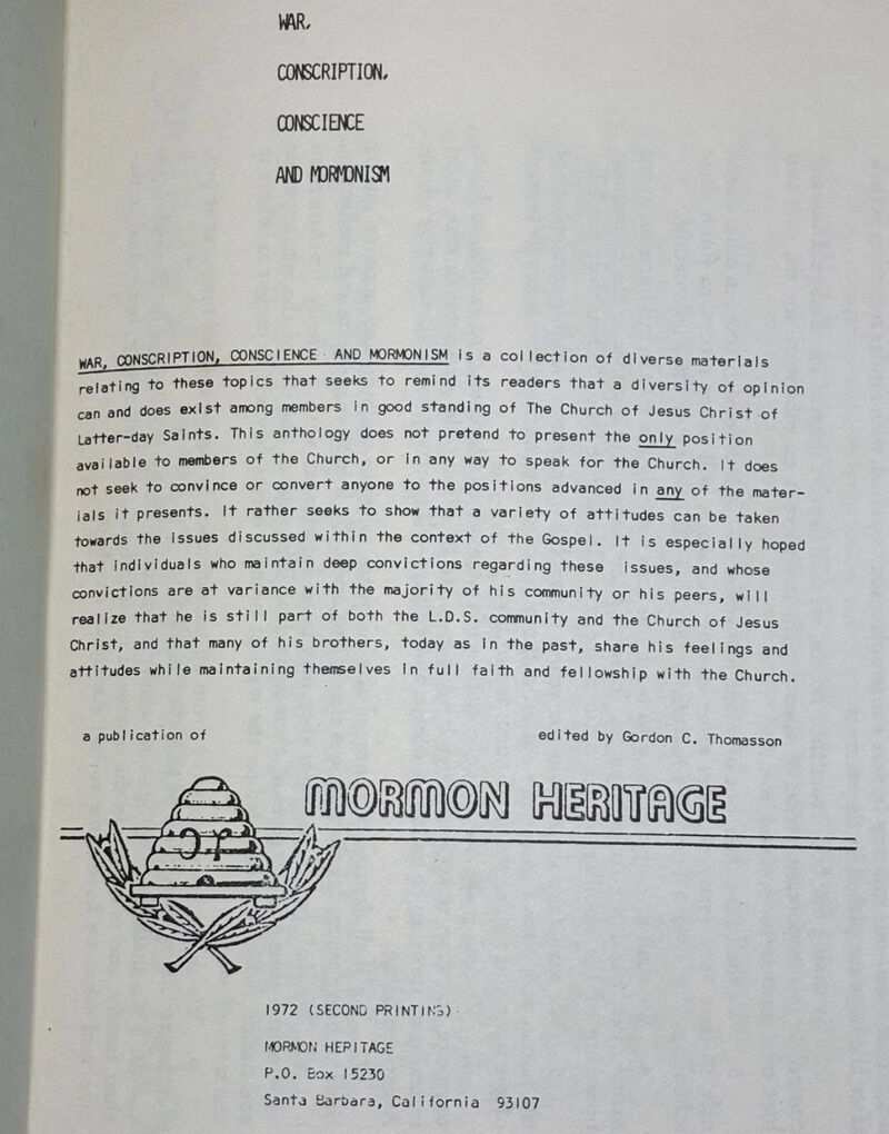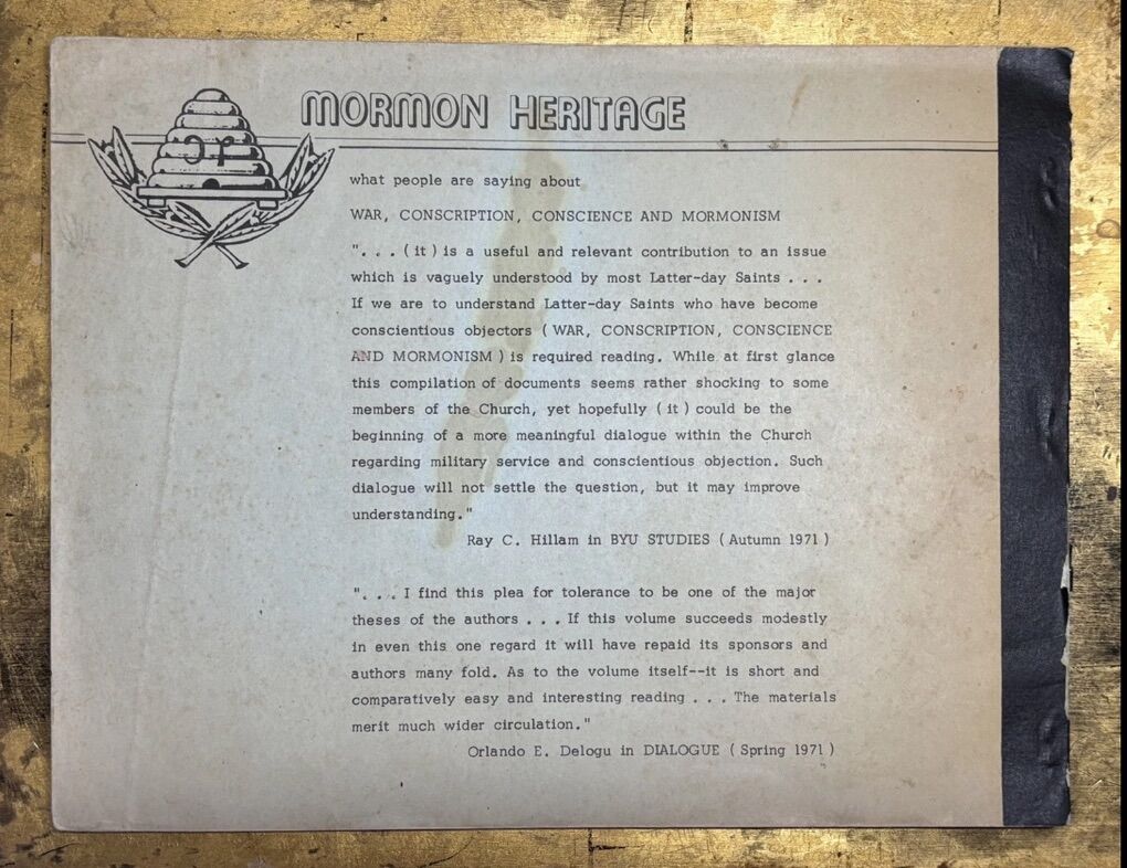 VenmoEXTREMELY RARE “WAR, CONSCRIPTION, CONSCIENCE & MORMONISM”
