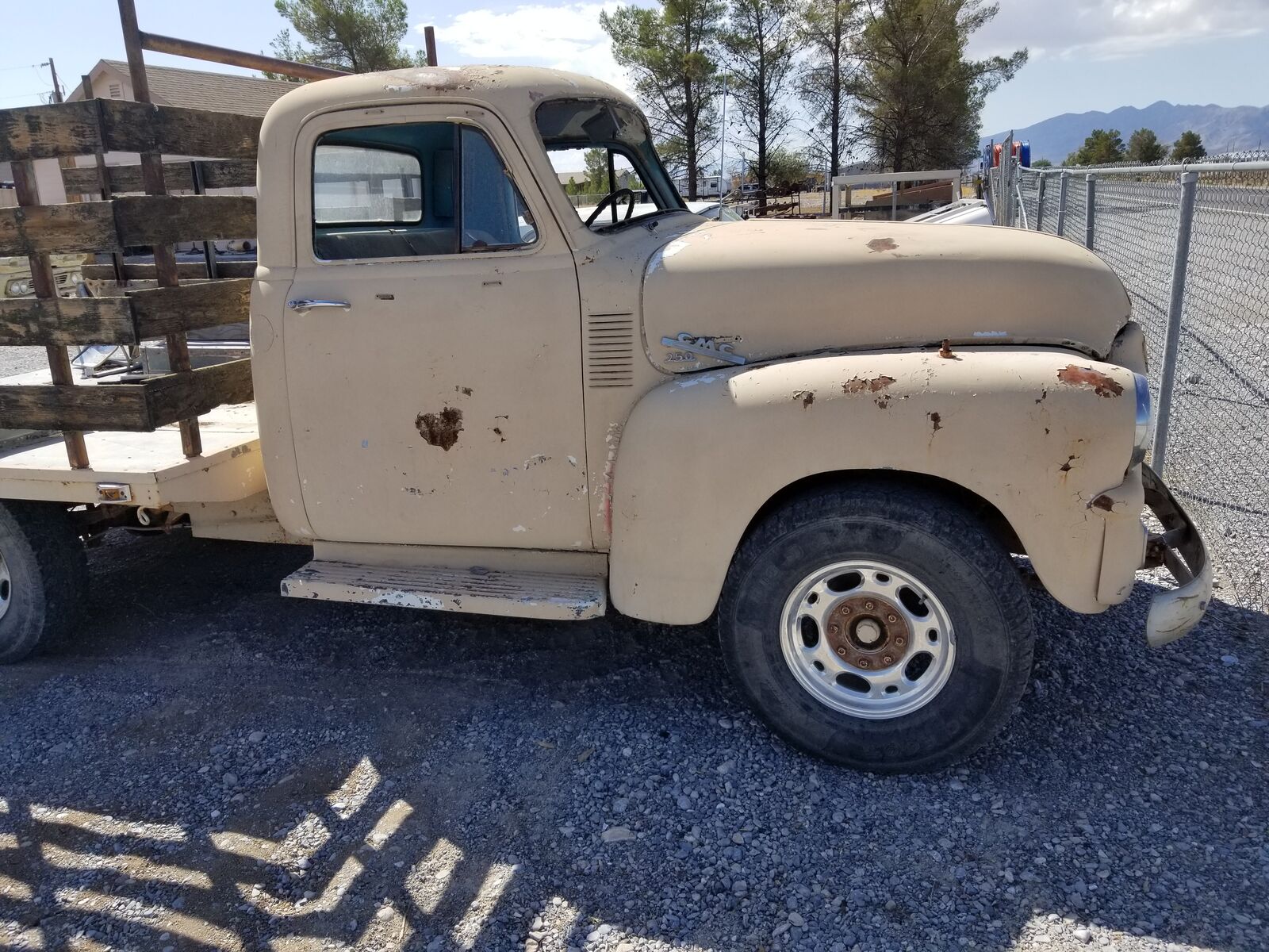 CALL/TEXT 920 279 6504 WITH OFFERS, QUESTIONS, GRIPS. 54 GMC 250 flat bed, has been setting, complete, original, solid Nevada desert body, the original 6 cly engine turns freely, ( I didn't try to start it) original seat, tires are up & hold air, TITLE IN MY NAME, the west coast mirrors are included, 920 279 6504, 60 Miles from Vegas in Pahrump, NV. I can help load on to a trailer.