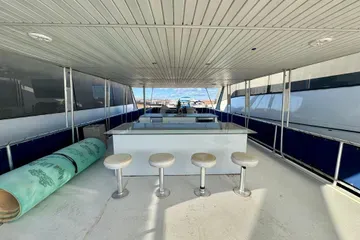 Upper Deck with Helm, Lounge, Dual Bars, Icemaker, and 8 Barstools