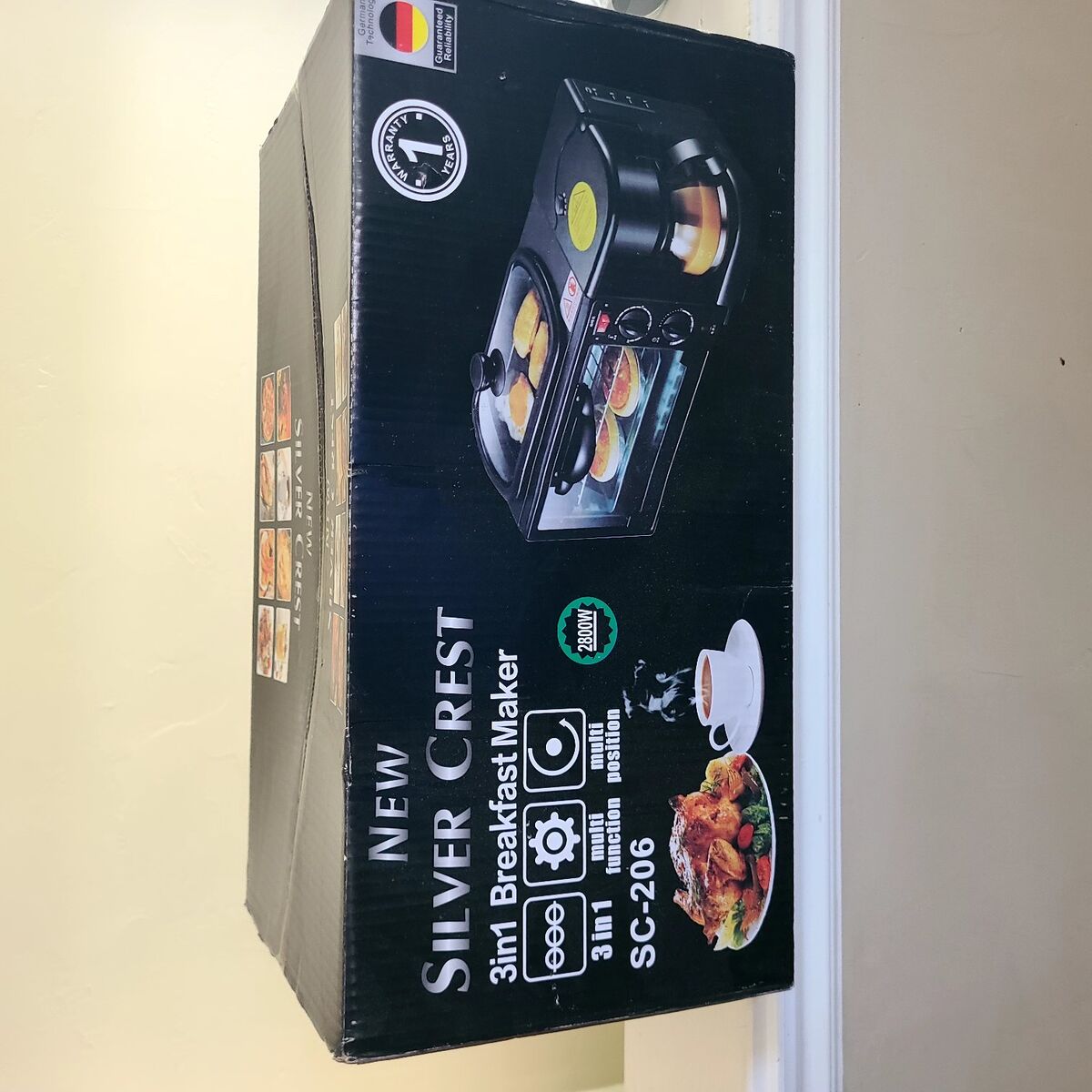 PayPalNew in sealed box. Multi-functional: It can be used for broiling, roasting, baking, grilling, frying, and brewing coffee. Power: It has a 2800W power rating, with a 2400W coffee maker capacity. Oven & Coffee Maker Capacity: The oven has a 12L capacity, and the coffee maker can brew up to 4 cups. Features: It includes temperature control up to 230°C, a 30-minute timer with a bell, an indicator light, and comes with a glass carafe, coffee scoop, and reusable filter. Design: It features a durable plastic housing and a compact design, making it suitable for small kitchens, college dorm, RV.