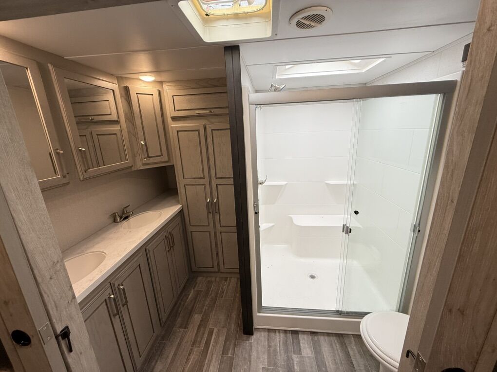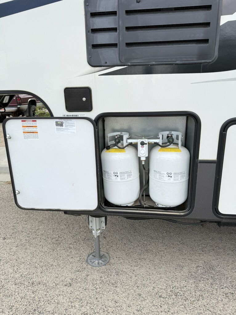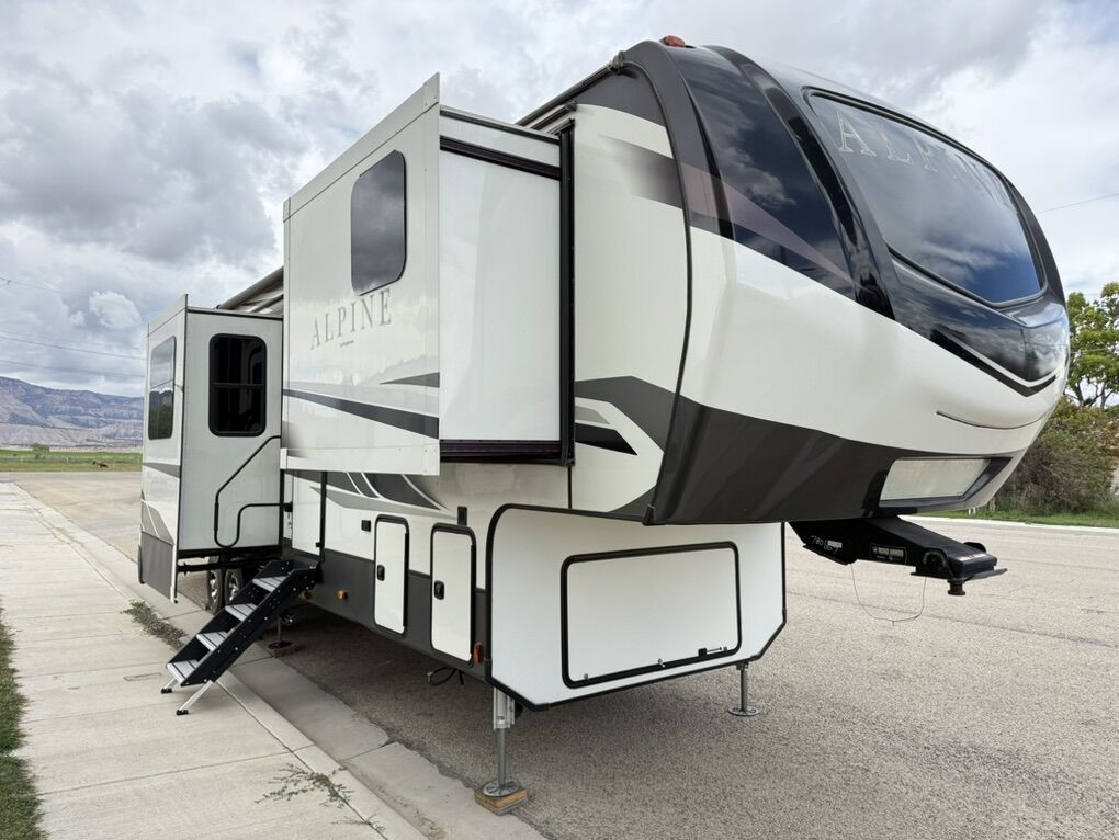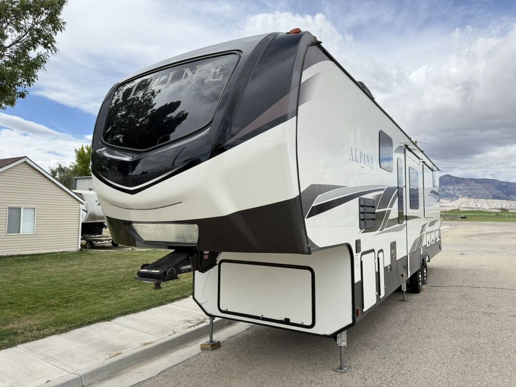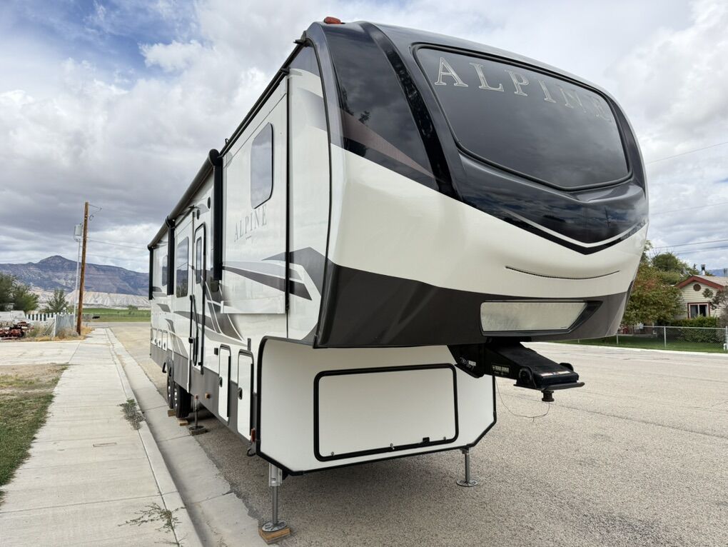 We purchased this trailer with intentions to live in it full time while we build our new home, but we are now going to stay in our current home while we build. So our loss is your gain! This Amazing Alpine trailer is ready to go to its new home! This trailer is the perfect trailer to live in for long term, wether your just a snowbird who is heading south for winter or need a place to live while you fulfill other dreams! The Front Kitchen is huge and separate from the living area so you can cook like your a chef and the living area has three couches to accommodate all the company you want to show your new little home to. The bedroom room has a king size mattress and TV to help you relax. The bathroom has his and hers sinks while the shower is big enough for the both of you. This is the perfect setup trailer for living in! The outside has tons of storage space for all your stuff and it has hydraulic auto leveling jacks so you don’t have to mess around with old jack stands anymore. The trailer has two Air Conditioning Units and A On Demand Tankless water heater. Call or text for any other questions. No scams or trades.