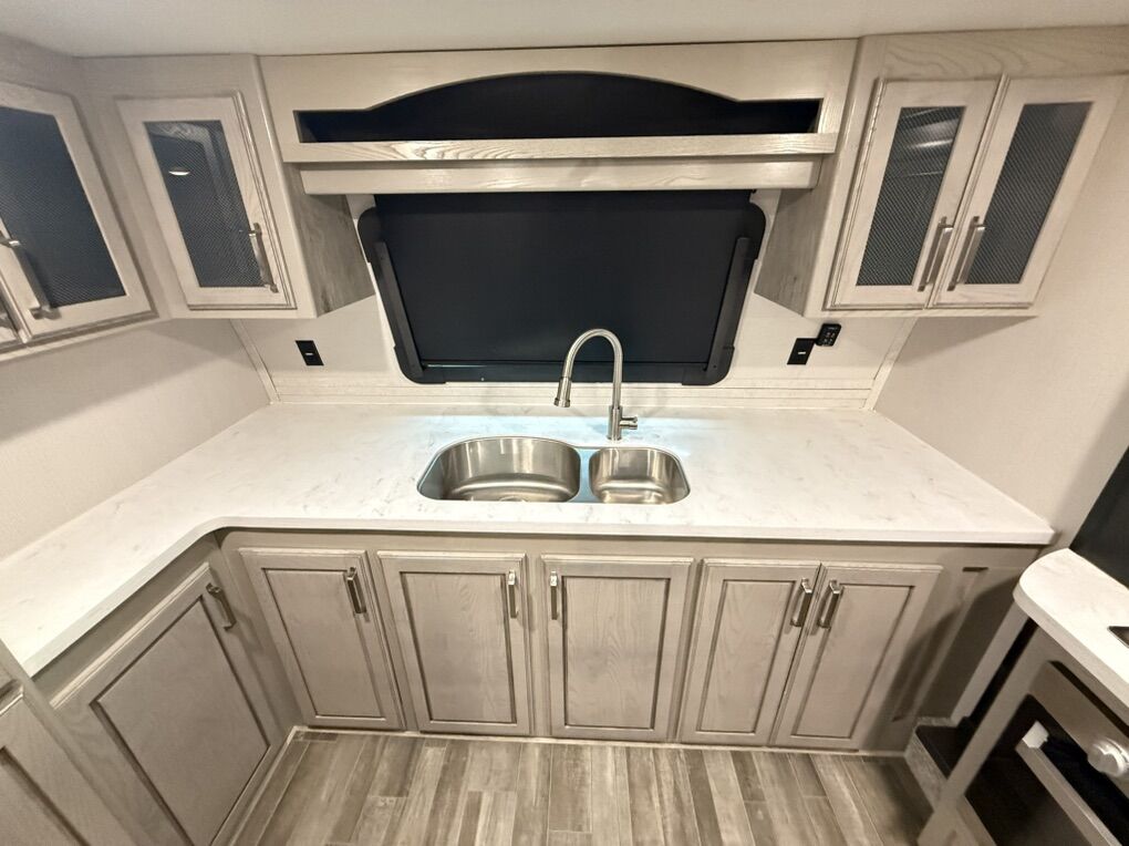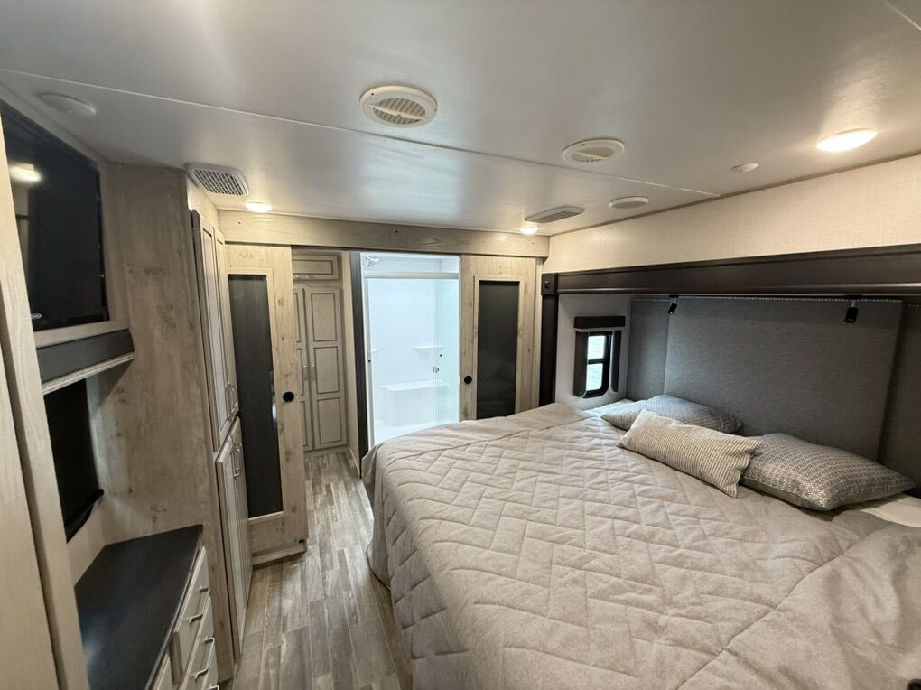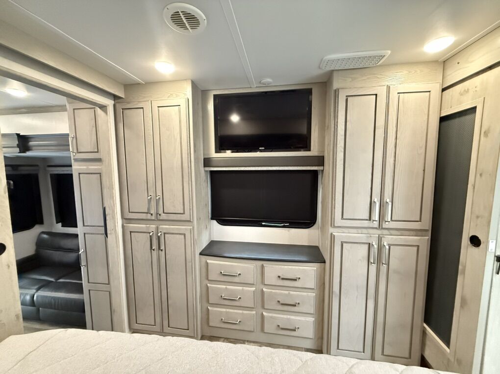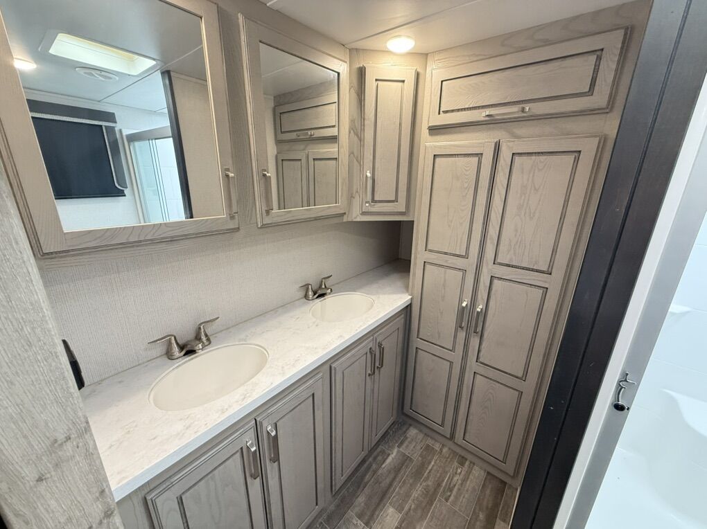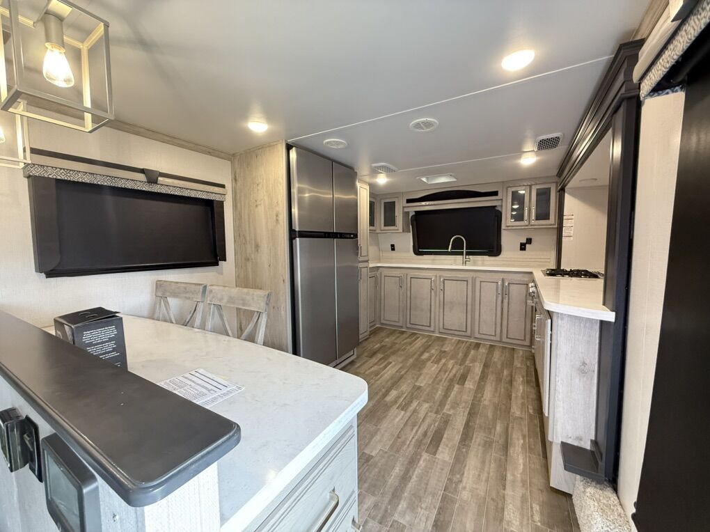We purchased this trailer with intentions to live in it full time while we build our new home, but we are now going to stay in our current home while we build. So our loss is your gain! This Amazing Alpine trailer is ready to go to its new home! This trailer is the perfect trailer to live in for long term, wether your just a snowbird who is heading south for winter or need a place to live while you fulfill other dreams! The Front Kitchen is huge and separate from the living area so you can cook like your a chef and the living area has three couches to accommodate all the company you want to show your new little home to. The bedroom room has a king size mattress and TV to help you relax. The bathroom has his and hers sinks while the shower is big enough for the both of you. This is the perfect setup trailer for living in! The outside has tons of storage space for all your stuff and it has hydraulic auto leveling jacks so you don’t have to mess around with old jack stands anymore. The trailer has two Air Conditioning Units and A On Demand Tankless water heater. Call or text for any other questions. No scams or trades.