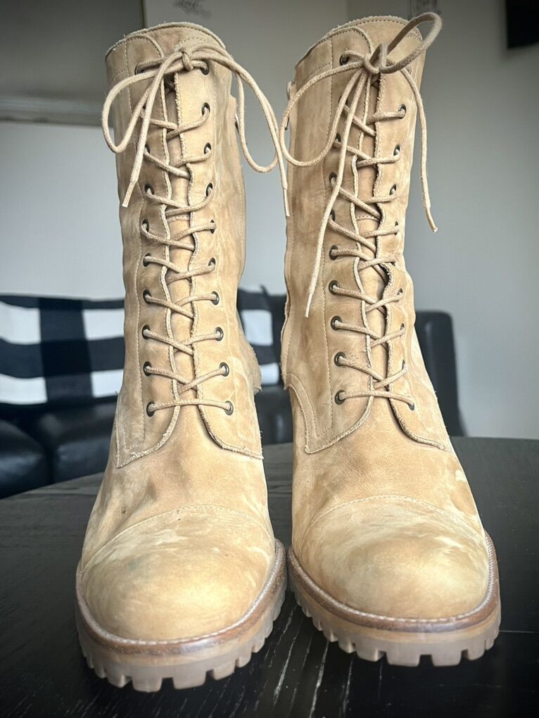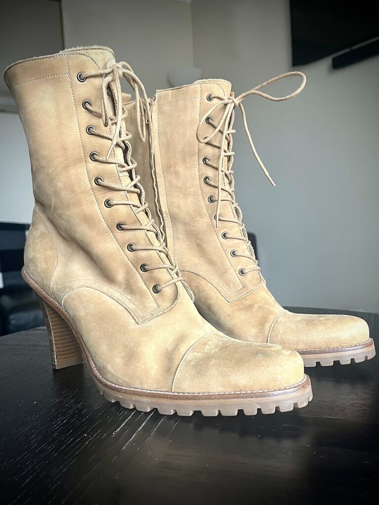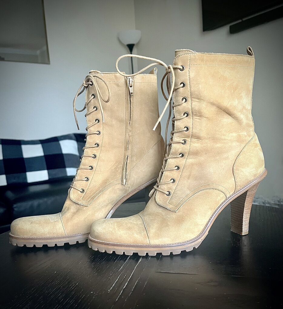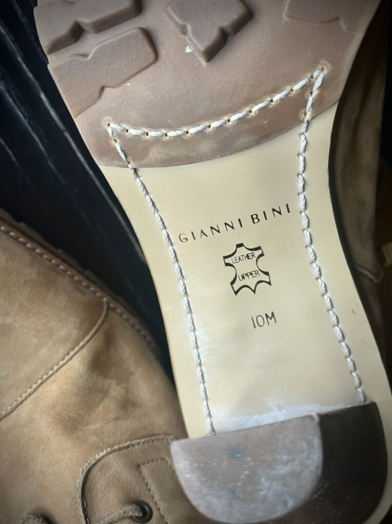 Used Gianni Bini Laceup High Heel Boots Color: Tan/Brown Size: 10M Heel Height : 3.5 inch Detail: Normal wear on sole with plenty of grip left on them; otherwise functional and ready for someone else to love them.