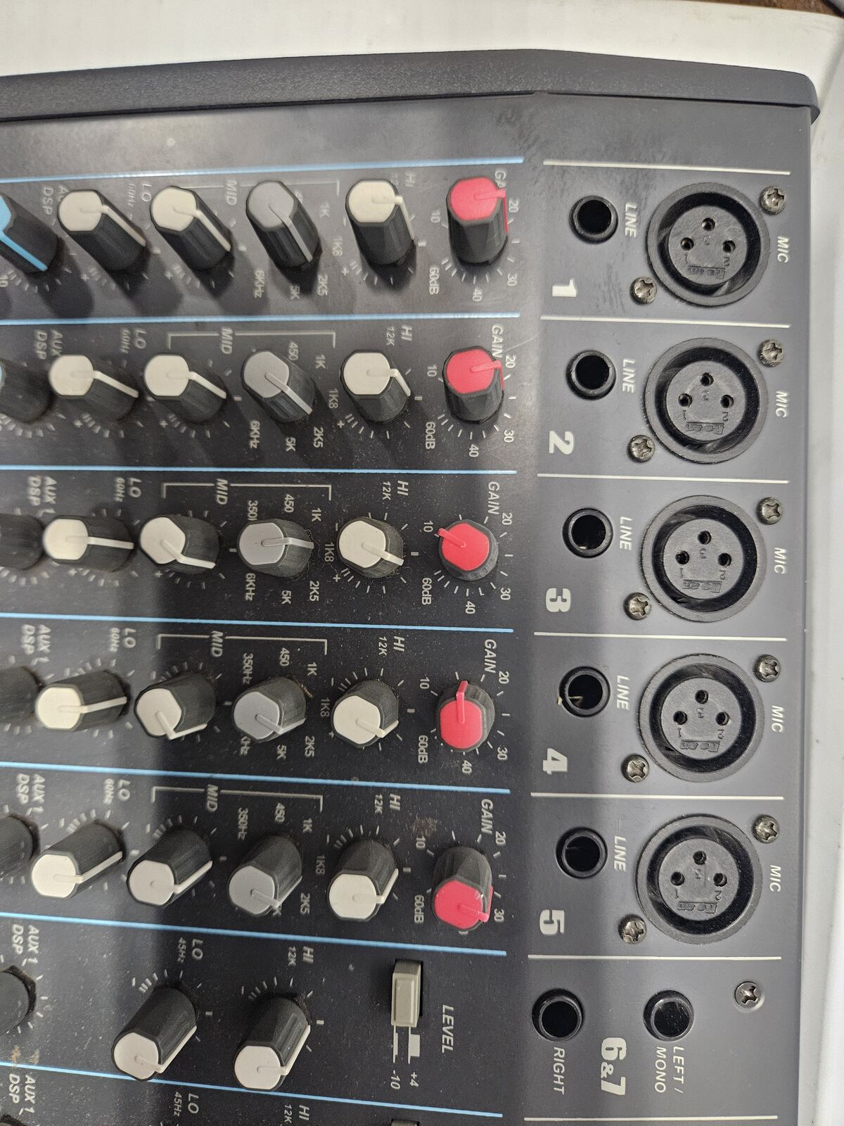 Zellehigh quality audio mixer, 5 XLR and 3 Stereo channels Real componants, pots and componants. channels on individual cards. Inserts and Parametric eqs. includes power cord, rack ears, manual and original packaging. Sounds great and the mixer portion works fine PLEASE NOTE!! The effect wont turn on. May be a simple fix but I am not a repair tech. it all works other wise.