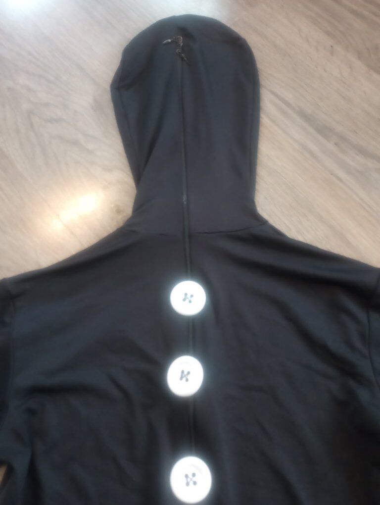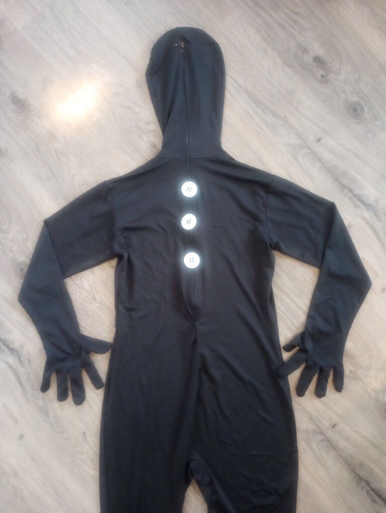 VenmoUsed Black Morph Suit--costume from Spirit Halloween--Kids size Large, which according to their size chart online says is a 12/14. My son wore this for Halloween when he was 13. Clean and in good condition--no holes, or snags--other than one spot that we mended. (shown in last pic) Zips up, over face. I can remove the buttons if you don't want them. $10 cash or Venmo. Pet and smoke-free home.