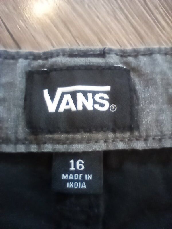 VenmoVans black denim shorts~teen boys size 16. A little wrinkled, but in good condition. From a pet and smoke-free home. $10 cash or Venmo. Text if interested. Feel free to check out my other ads- I do have some other boys clothes for sale.