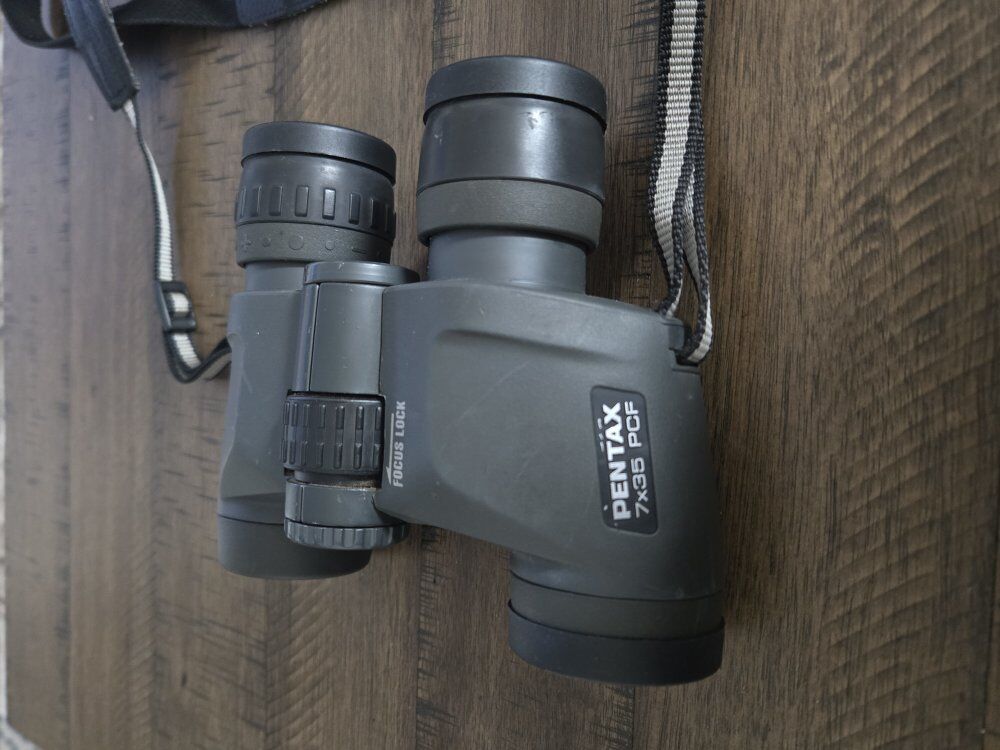 VenmoPentax 7x35 PCF These have been an amazing set of binoculars. Haven't used in years, ready for their next home. Case and lens cleaner rag included. one cover/cap is missing.