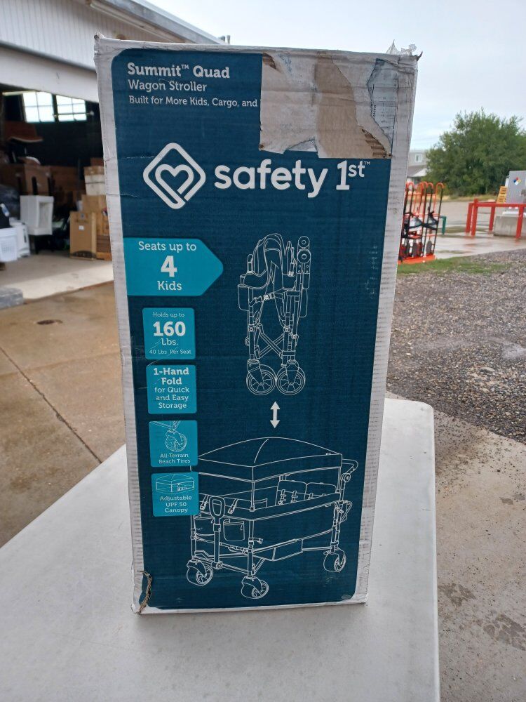 safety first summit quad wagon stroller seats up to four kids holds up to 160 lb, one handful for quick easy storage and all-terrain tires gray Harbor in color brand new any questions please message me