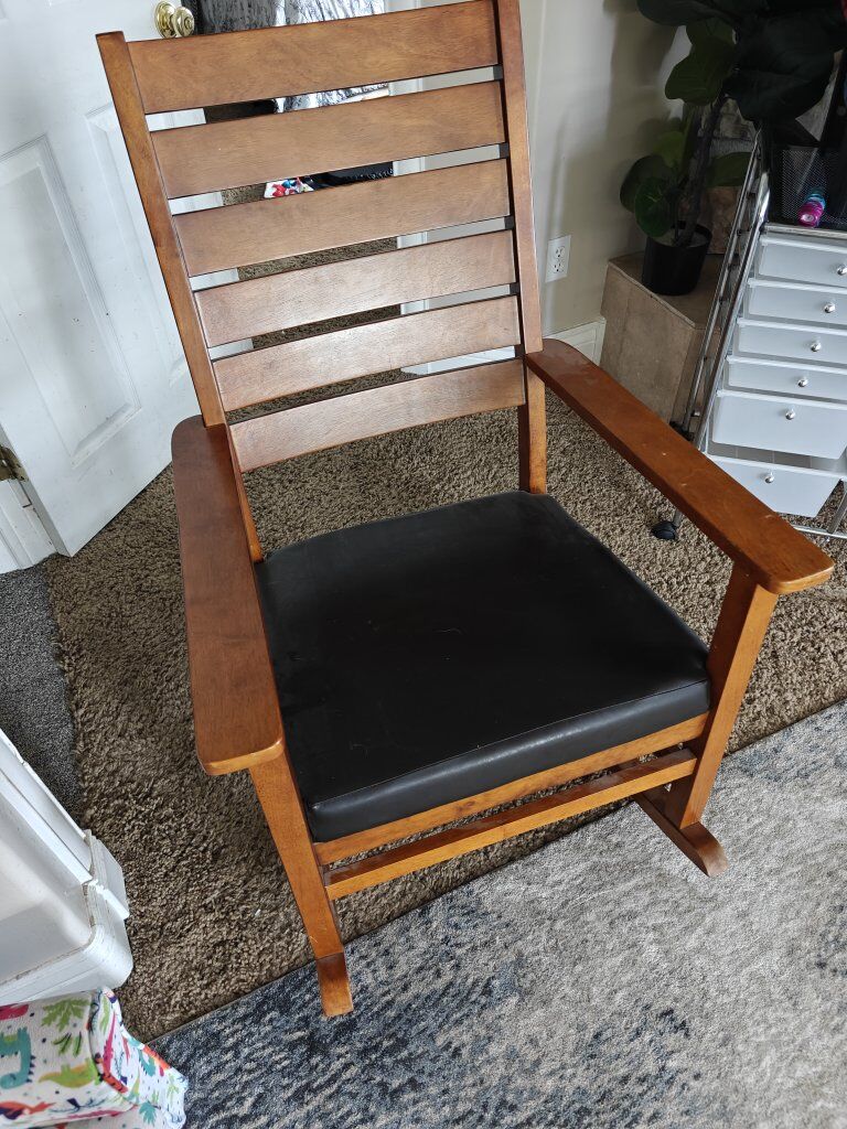 PayPalVery large, solid wood with a leather seat. Great condition! We've hardly ever used it. 26"W x 32" D x 43" T Text anytime