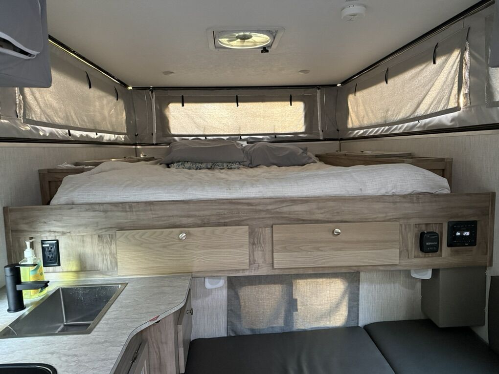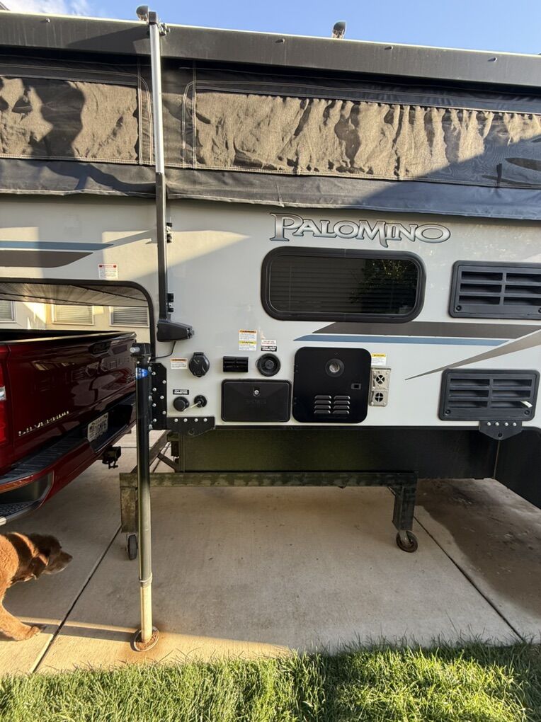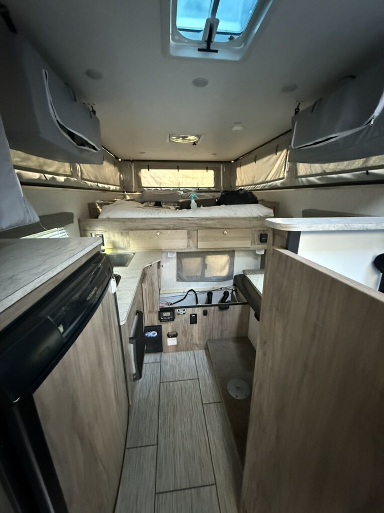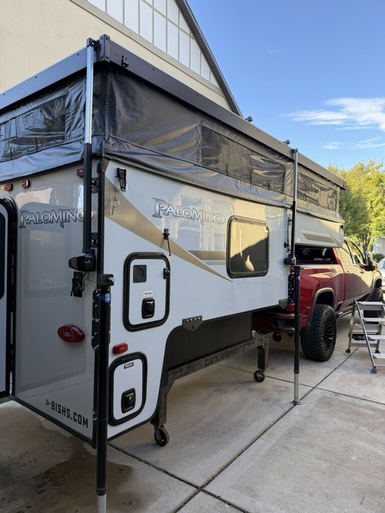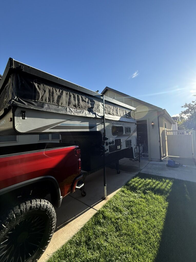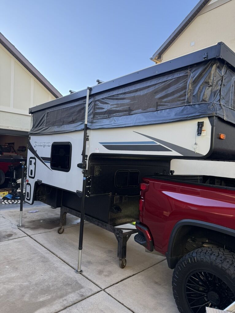 This camper is in excellent condition and has only been used a handful of times. It’s loaded and comes with everything you need (turn key). It comes with a metal stand to store it and move it around if needed, a little giant step ladder and all of the bed rail truck mounts. An extra battery was also added so you’re at full capacity. Below is all of the details and everything it has. We decided to go a different route and get a bigger trailer. Text with any questions.