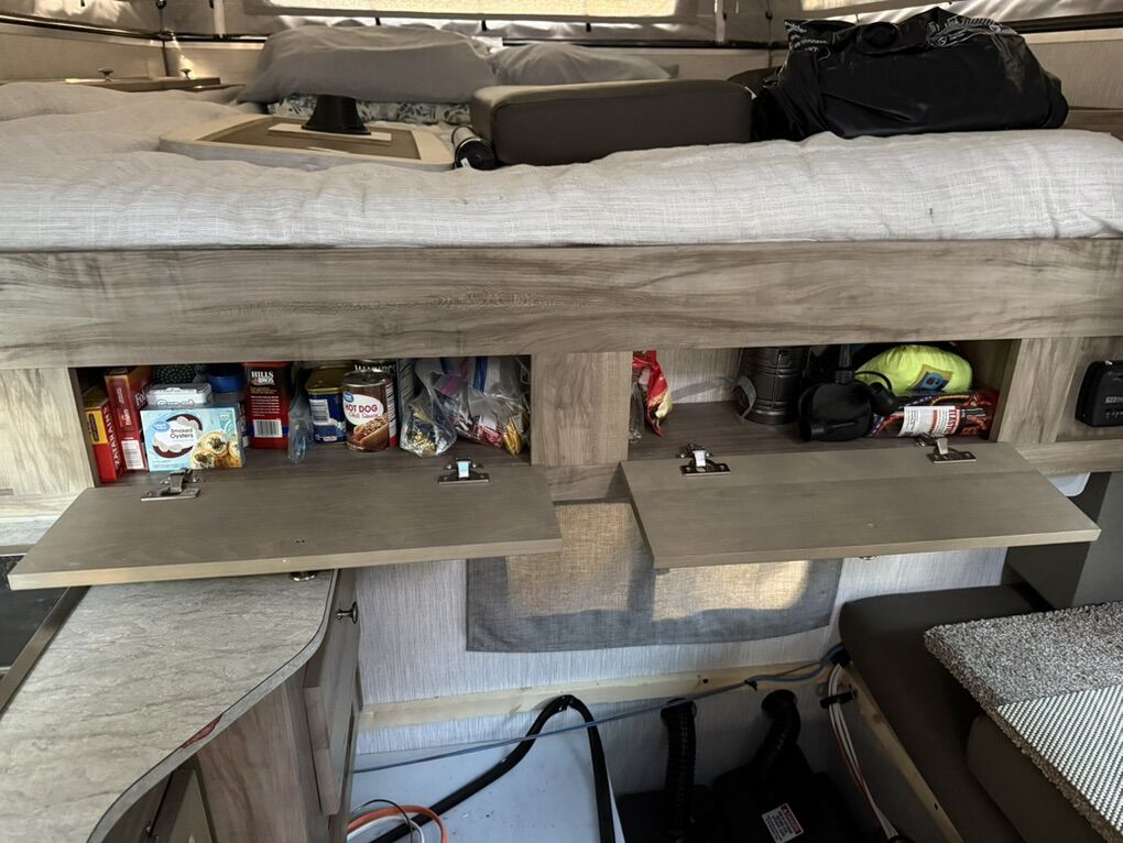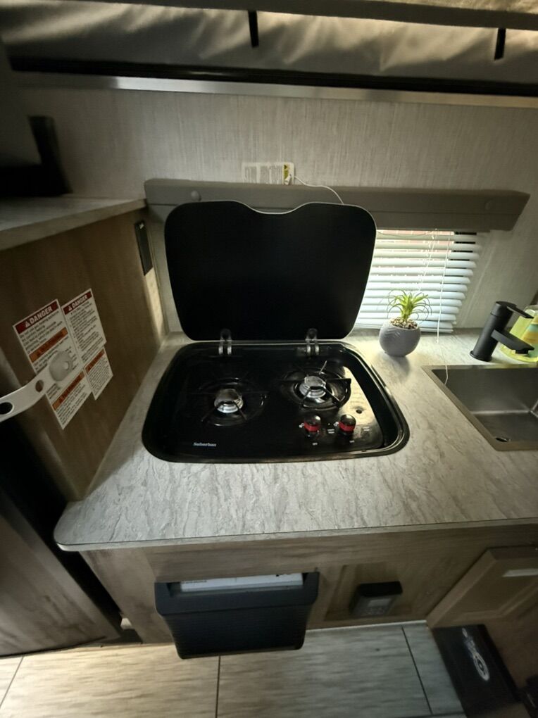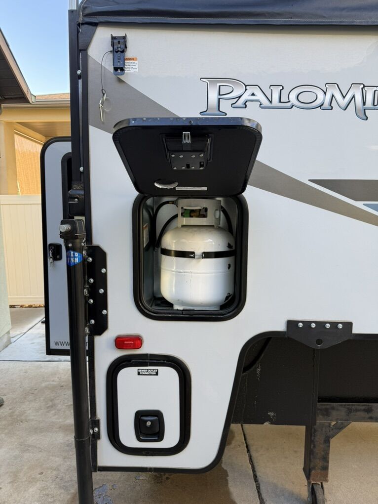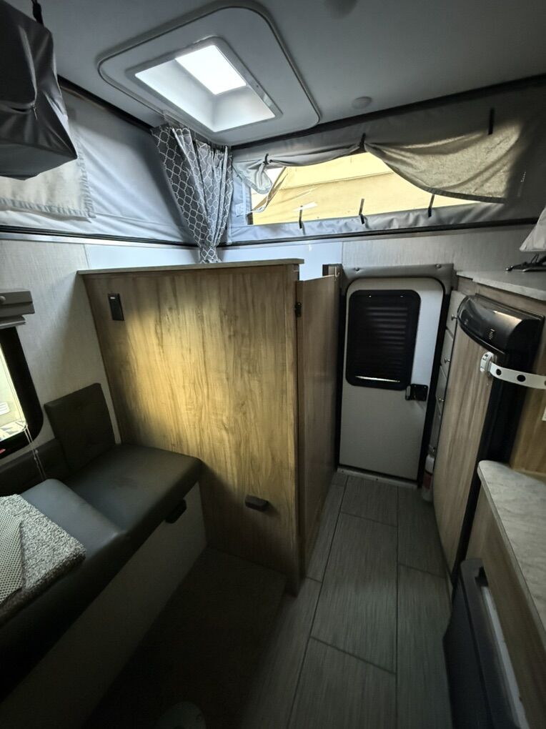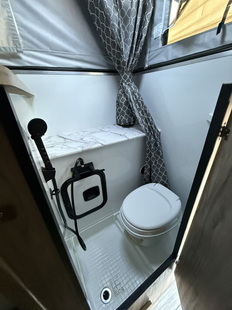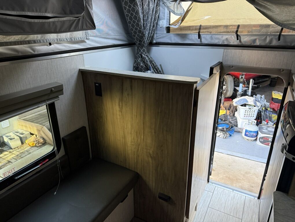 This camper is in excellent condition and has only been used a handful of times. It’s loaded and comes with everything you need (turn key). It comes with a metal stand to store it and move it around if needed, a little giant step ladder and all of the bed rail truck mounts. An extra battery was also added so you’re at full capacity. Below is all of the details and everything it has. We decided to go a different route and get a bigger trailer. Text with any questions.