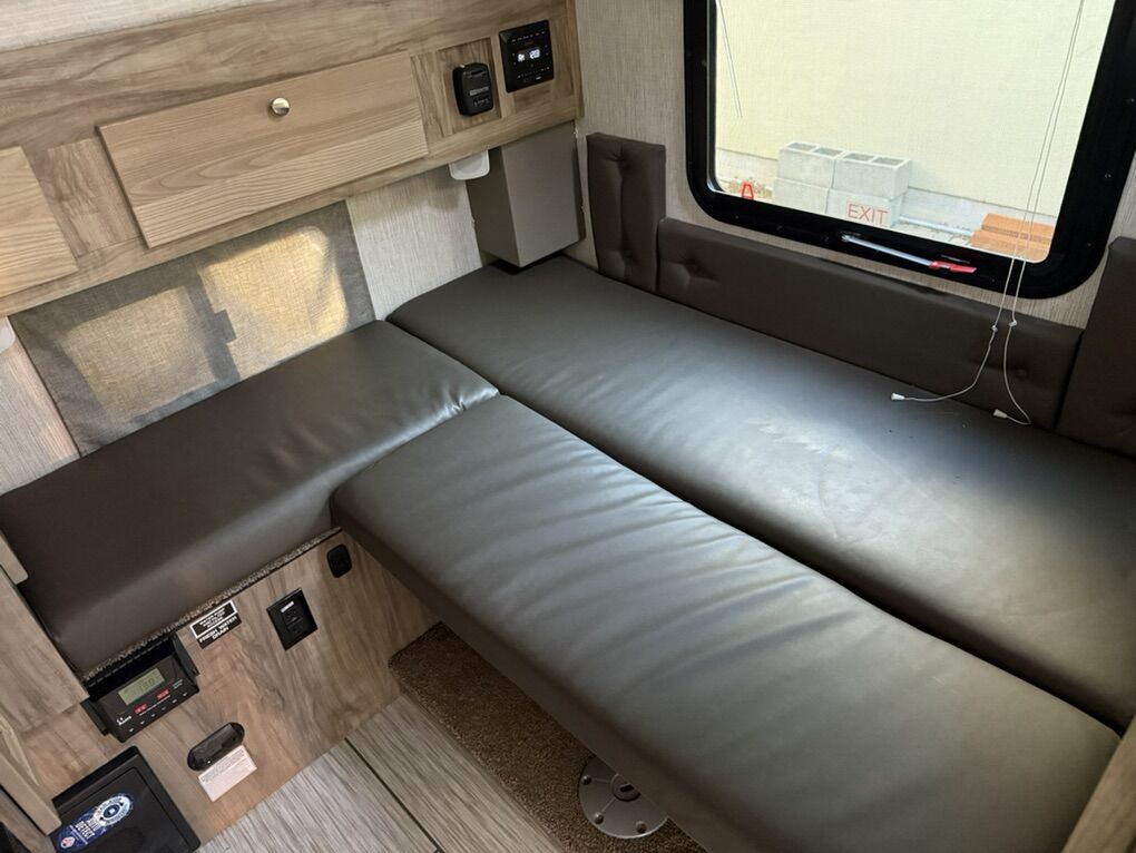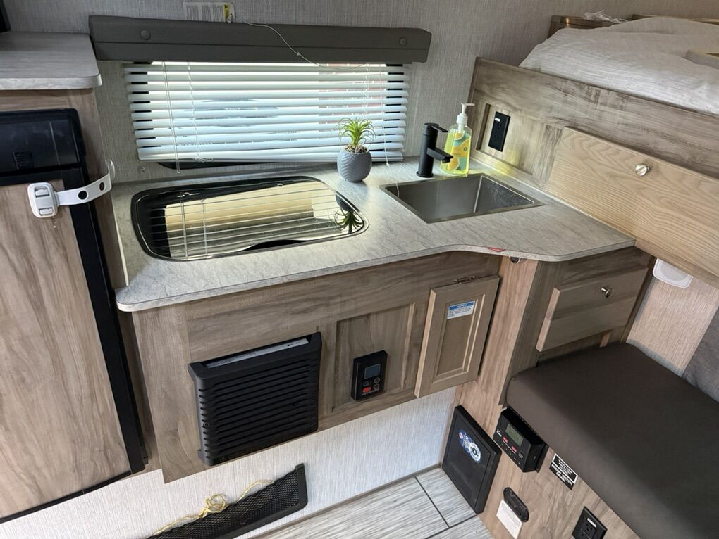 The 2023 Palomino Backpack Edition SS-1251 Badlands is a soft-side truck camper designed for off-road adventures. The Badlands package includes a 100W solar panel, an additional battery tray, and Thule roof racks for carrying bikes or kayaks. The SS-1251 features a queen bed, a wet bath, a two-burner cooktop, a three-way refrigerator, and an electric roof lift with a remote control for the camper's jacks and roof. Key Features & Specifications Type: Soft-side truck camper Bed: Queen bed with foot lockers and storage Bathroom: Wet bath with a wet bath Kitchen: Two-burner cooktop, three-way refrigerator (electric, propane, 12V), single bowl sink Construction: Aluminum frame, high-density block foam insulation, Congoleum flooring, Alpha Super Flex membrane roof Power: Electric roof lift, electric jacks (optional), remote operation for roof and jacks, solar prep with a 100W solar panel in the Badlands package Storage: Ample interior storage, plus Thule roof racks for external gear (kayaks, bikes, etc.) in the Badlands package Comfort: 20,000 BTU furnace, Maxx Air vent for ventilation Badlands Package Details Solar Power: 100W solar panel on the roof to power the camper's systems Battery System: Extra battery tray to accommodate additional batteries for off-grid power Carrying Capacity: Thule roof racks that can be used to carry bikes, canoes, or kayaks Interior & Exterior Interior: Mortise and tenon hardwood cabinets, ball bearing drawer guides, and a comfortable dinette that converts to an additional sleeping area Exterior: High gloss gel-coated fiberglass exterior, an oversized grab handle on the entrance door, and a friction hinge door