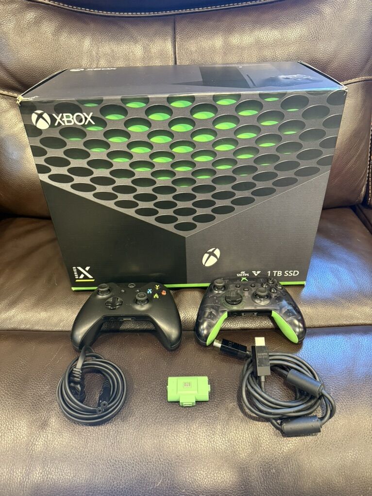 ApplePayXbox series X, comes with two controllers are rechargeable, battery pack, and original box and cables. Everything works amazing and is in great condition.