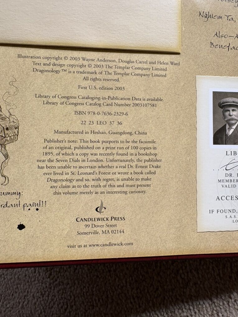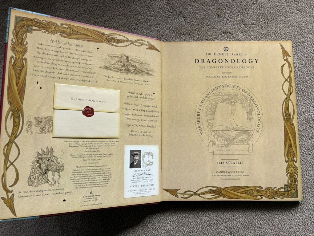 Dragonology: The Complete Book of Dragons. By Candlewick Press, 2003. Very good condition, no marks, all inserts, letters, and maps complete. Text only. Cash or Venmo.