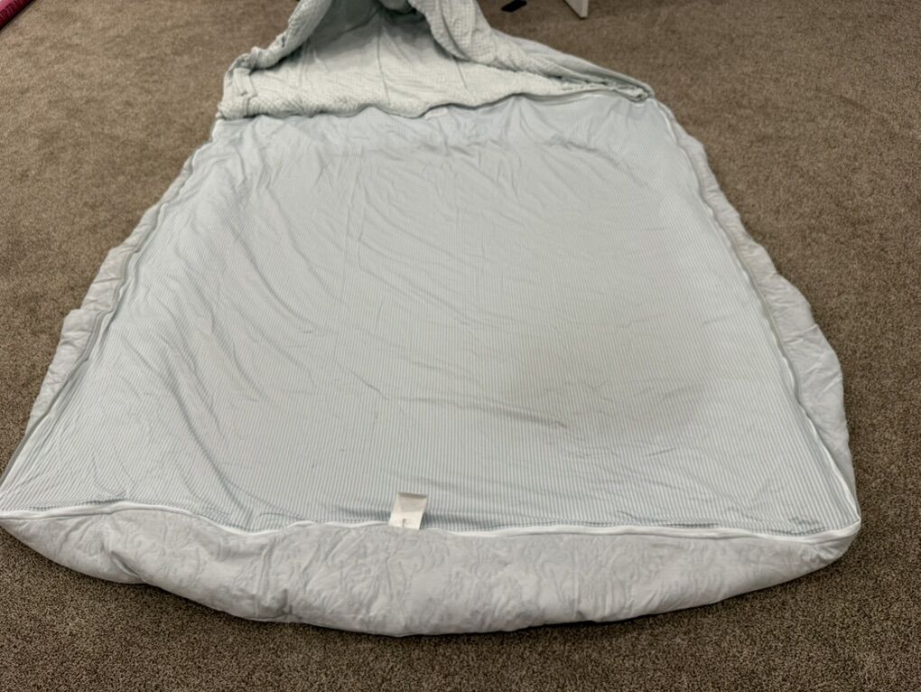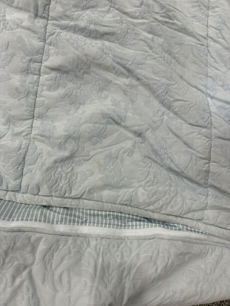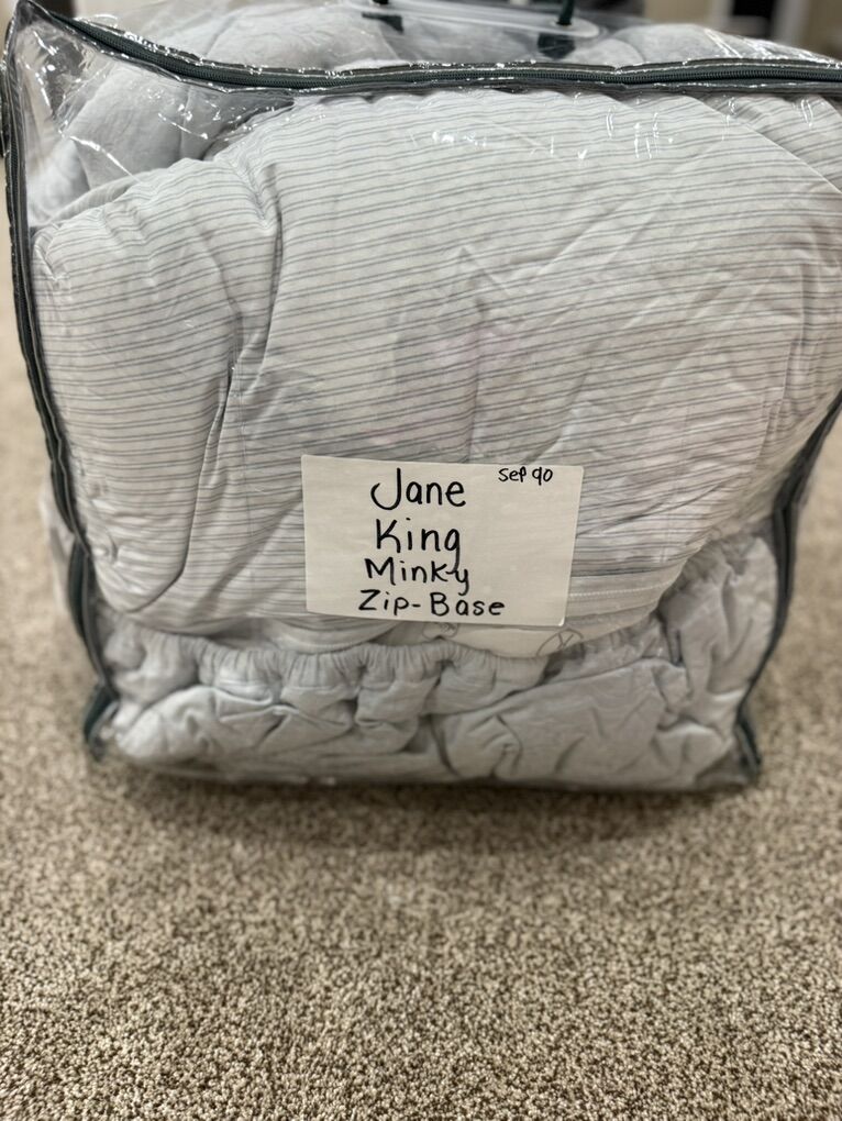 King Jane minky Zipbase. Has 1 sheet, 2 shams and 2 cases. Sheet shows signs of wear/stains and orange spot on top. 90Sep $514 new