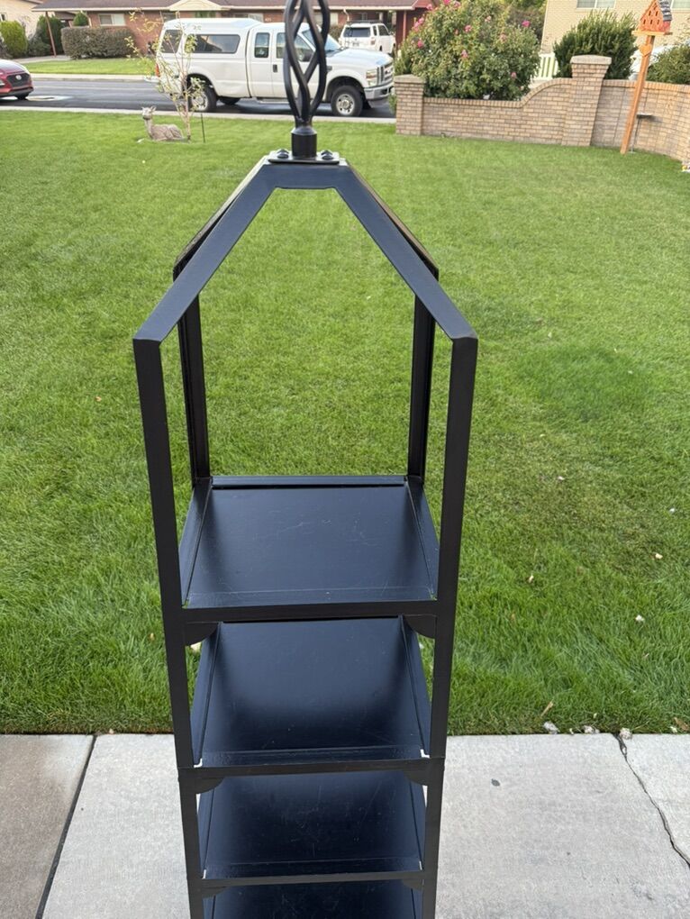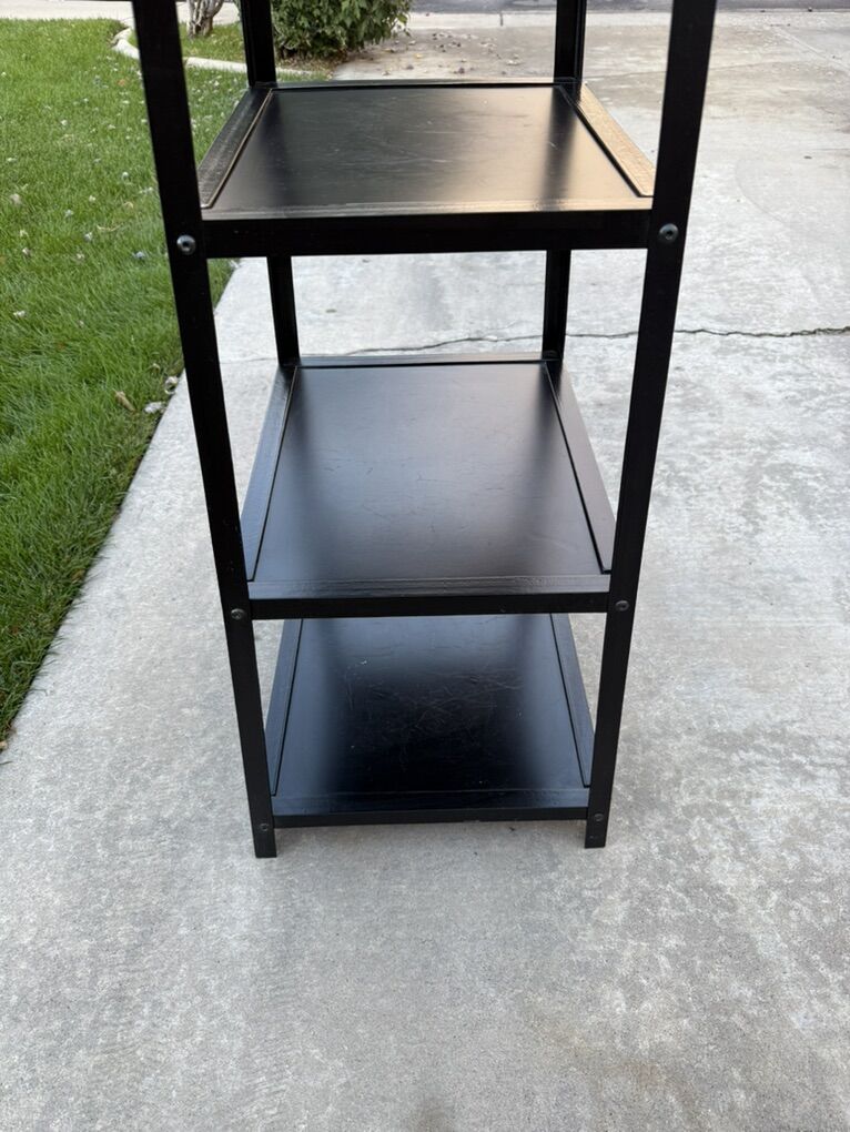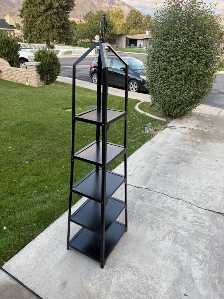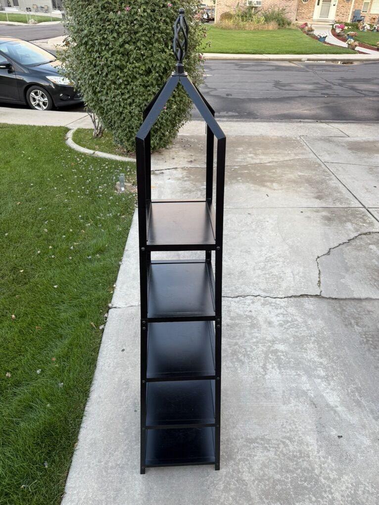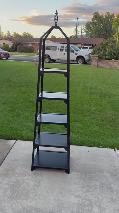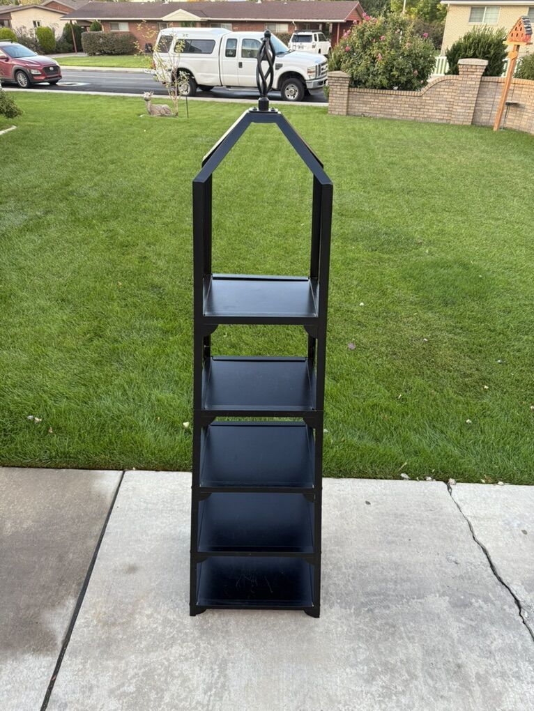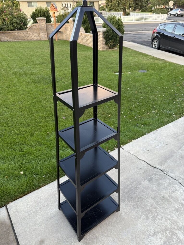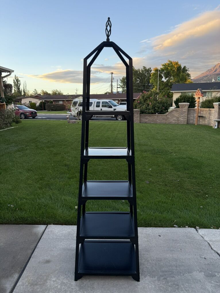 Ballard Design Grand tour Display metal Black Shelf Heavy duty! Measurements 18 wide bottom 13 wide top 14 deep bottom 10.5 deep top 76 tall to top ornament
