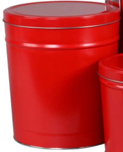 30 Gallon Round Tin Container with large round lid.