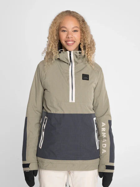 The Rosalie Insulated Anorak is a versatile 2L piece that puts a color blocked spin on the design cues of the classic pullover. With an ultra-durable, throwback inspired Nylon Full Dull Ripstop fabric, you can depend on 10K/10K protection that will stand up to season after season of abuse. Zipped center front and handwarmer pockets keep your belongings secure while Lycra wrist gaiters and a 4-way stretch powder skirt keep the elements on the outside where the belong.