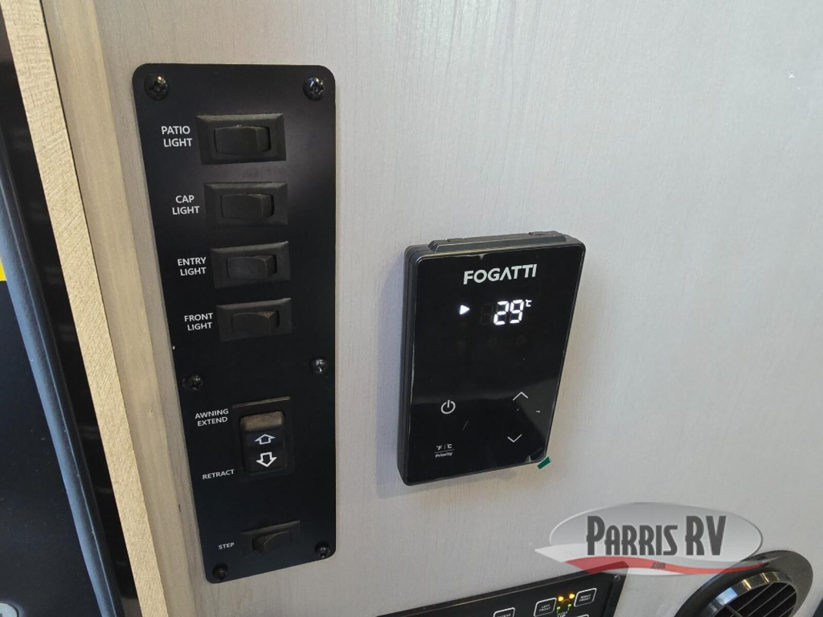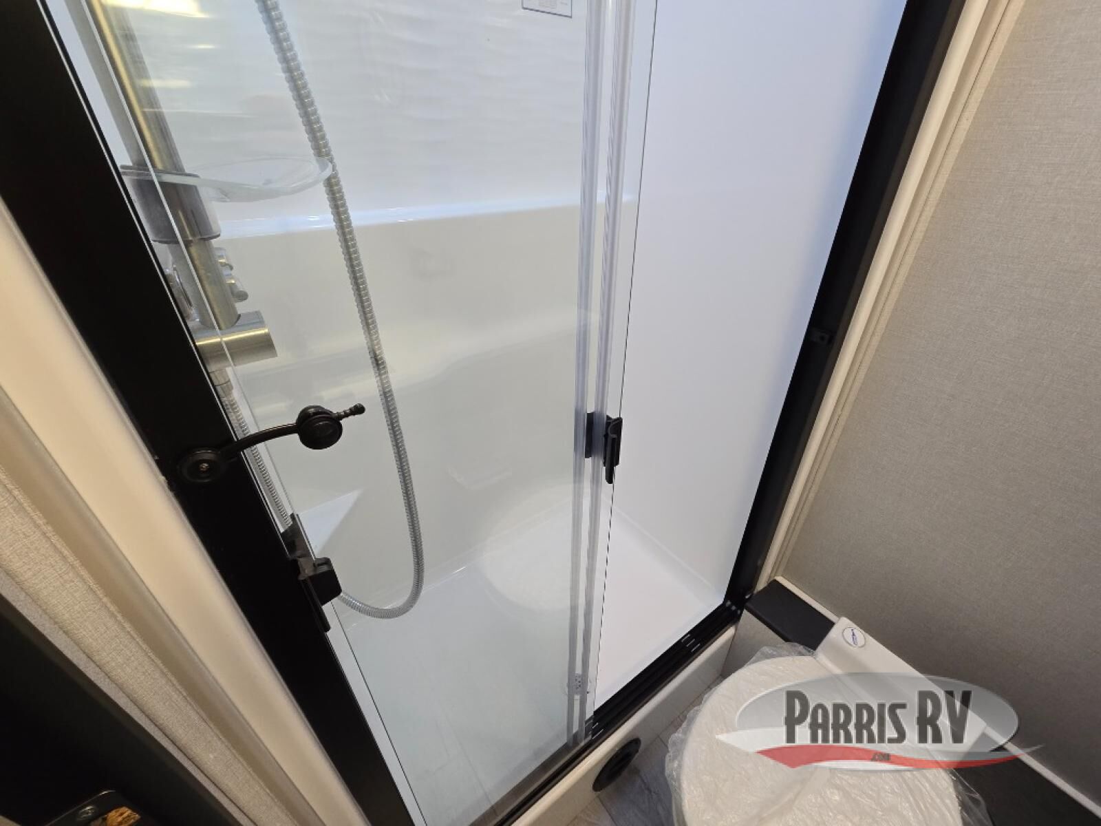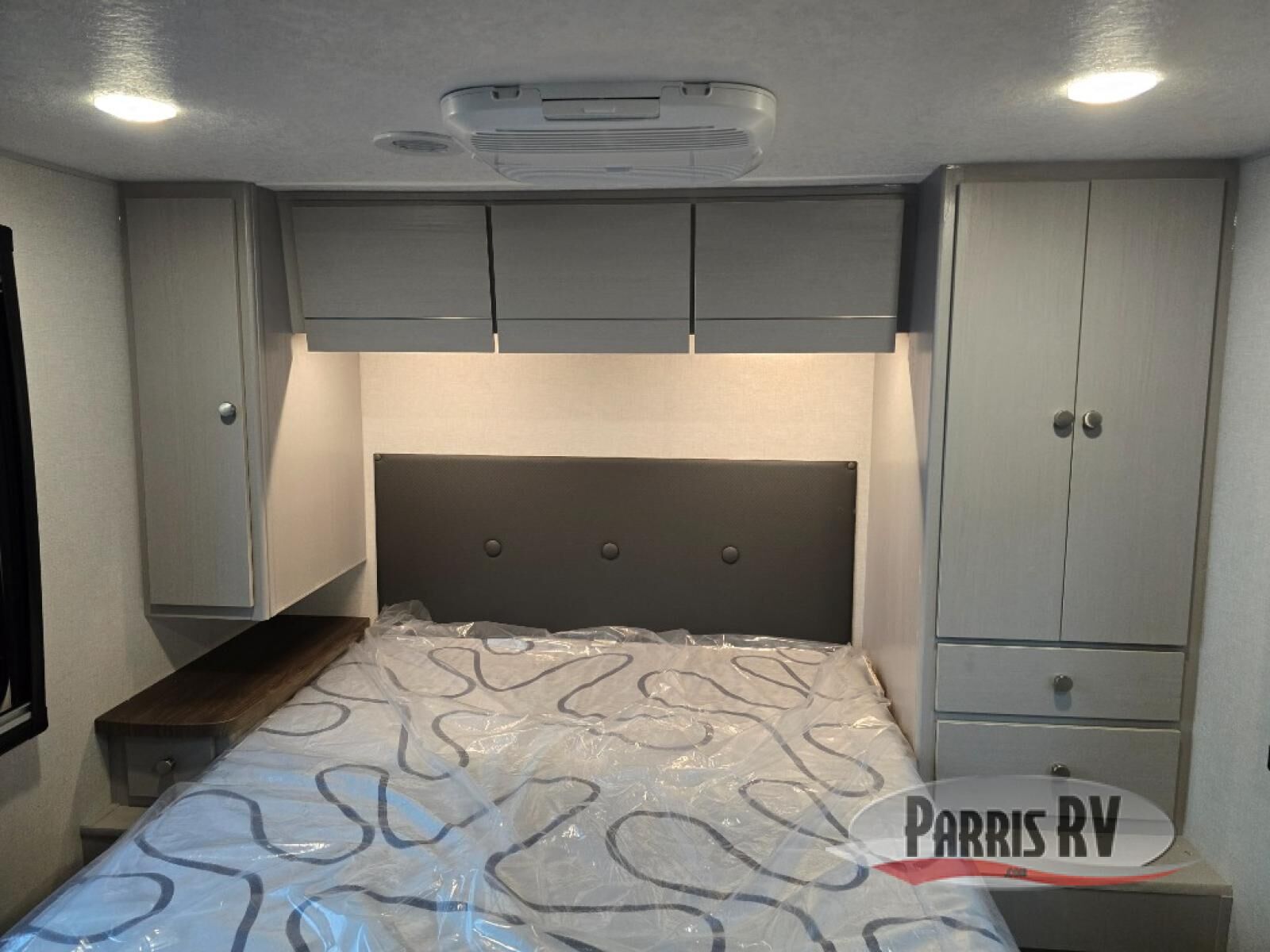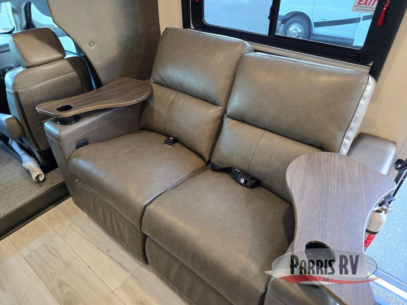 Pack your bags and head across the state in this durable coach. You can sleep five to six each night between the queen bed in the rear bedroom, the cab-over bunk, plus the booth dinette that will convert to sleeping space. The power recliners are sure to bring comfort after a day of traveling, or you can head outdoors to enjoy the outside TV and exterior grill table. When you get hungry, you can make lunch on the induction cooktop or in the convection microwave, and there is a 10 cu. ft. 12V double door refrigerator to keep your cold items fresh. A full bath is ready for you when you want to freshen up, and you'll find a wardrobe right across from the bath to keep clothes and linens ready to use. And the washer and dryer combo prep gives you the option to add these appliances if you choose!