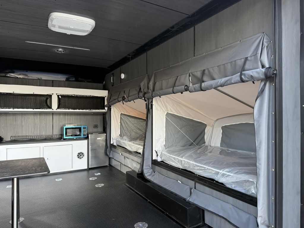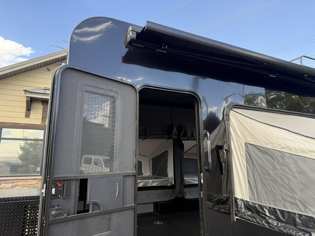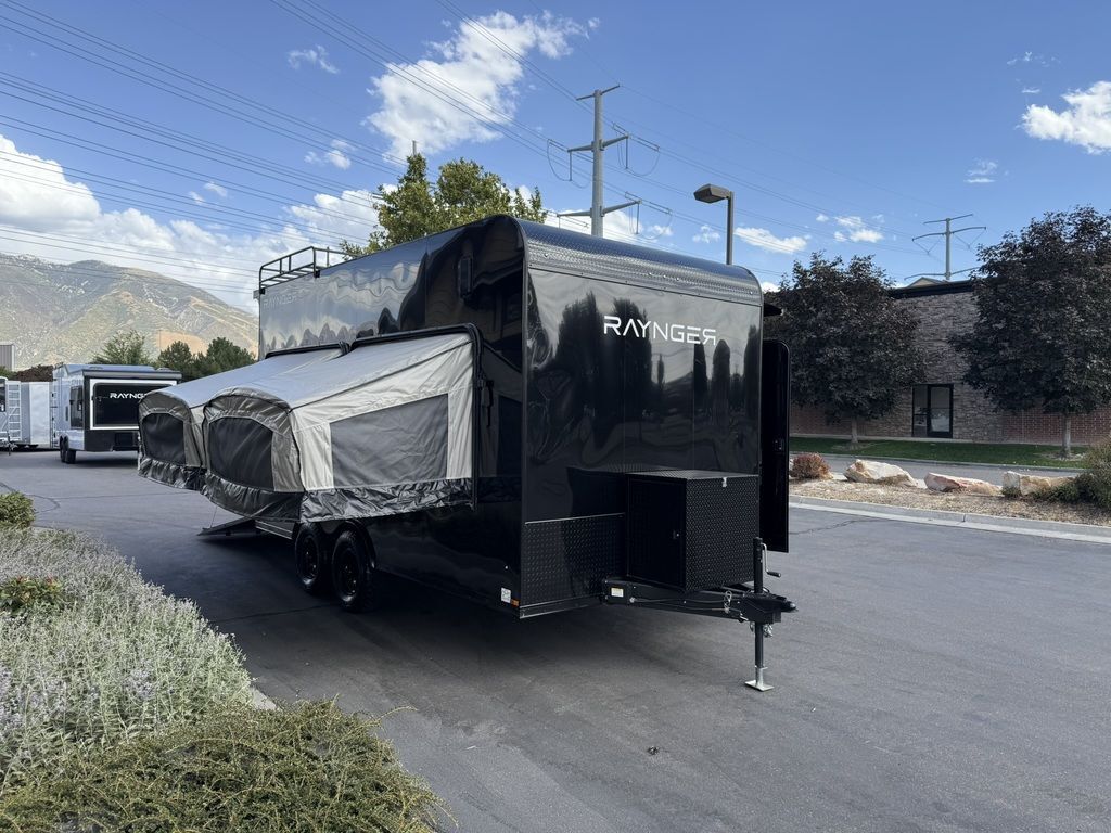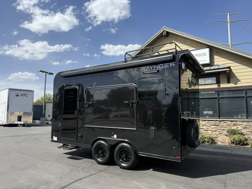 LIMITED TIME $387 A MONTH WITH ZERO DOWN WITH OUR SPECIAL LOCAL CREDIT UNION PARTNER!!! NO PRE-PAYMENT PENALTIES!!! NEW MODEL WITH 12V FRIDGE AND MICROWAVE!!! WILL FIT ANY STOCK SIDE BY SIDE UTV!!! RAYNGER PREMIUM OFF ROAD TOY HAULER CAMPER!!! 18 INCH GROUND CLEARANCE!!! OFF ROAD TIRES!!! FULLY INSULATED!!! HEATING AND A/C!!! WET SOUND STEREO!!! THREE FOLD OUT/POP OUT TENTS WITH MATTRESS!!! CARGO BASKET!!! LED LIT AWNING!!! 87 Inch Rear Entry Height/90 INCH INTERIOR HEIGHT!!! 95 Inch Rear Entry Width!!! Aluminum Ventilated Locking Generator Box!!! UPGRADED TORSION AXLES!!! And Much MUCH MORE!!! Check out our Specs!!! 16 Foot and 18 Foot Models will fit ANY stock 4 Seater Side by Side • 6” I Beam Frame• Flat Top Design• Flat Front Design• Wall Posts 16” on Center• Cross Members 16” on Center• Roof Bows 16” on Center• Rust Inhibiting Z-Tech Protection on Chassis• Ameraguard on Tongue• Ameraguard on Rear Bumper• Ameraguard Around All Door Openings and Stepwell• Ameraguard Around Edges of Ramp Door• 3500 LB Spring Axles• 2-5/16” Coupler• One-Piece Aluminum Roof• ST235/75R15 Aluminum Wheels with Chrome Center Caps• 2000# Ramp Door with Eberhard Latch• 30” Tempered Glass RV Door with Screen Door• .030 Exterior Metal with Screwless Sides• 24” Black Stoneguard• 3” Black Bottom Trim• Sand Pad• Black Door Hold• 2.7mm Charcoal Textured Vinyl Ceiling • 9mm Charcoal Textured Vinyl Walls• 3/4” Engineered Wood Floor with Rubber Coin Overlay• (6) 1200 LB Floor D rings Installed with Backer Plates• LED Clearance Lights and Tail Lights• LED Back-up Lights• No Show Wheel Box• Spoiler with Toggle Switch• RV Step• 7’ Interior• (2) 17” Chrome Base Lights with Switch• (1) Black 17” Spot Light with Switch• (1) 30 Amp Panel with Marine Plug• A/C Unit with Heat Strip• (3) Interior Recepts• (1) Exterior Recept• 12V Battery and Charge Line• Prep for Backup Camera• Wet Sounds System• (3) Blue Interior Cabinet Lights• (1) 6’ Section of Flex Lights• Black ATP Rear Header and Hoop• Black ATP Fenders• Insulated Walls & Ceiling• Base Cabinets• Overhead Cabinets with Netting Over Compartments• Pop Out Tent• Black ATP Storage/Generator Box Mounted On Tongue