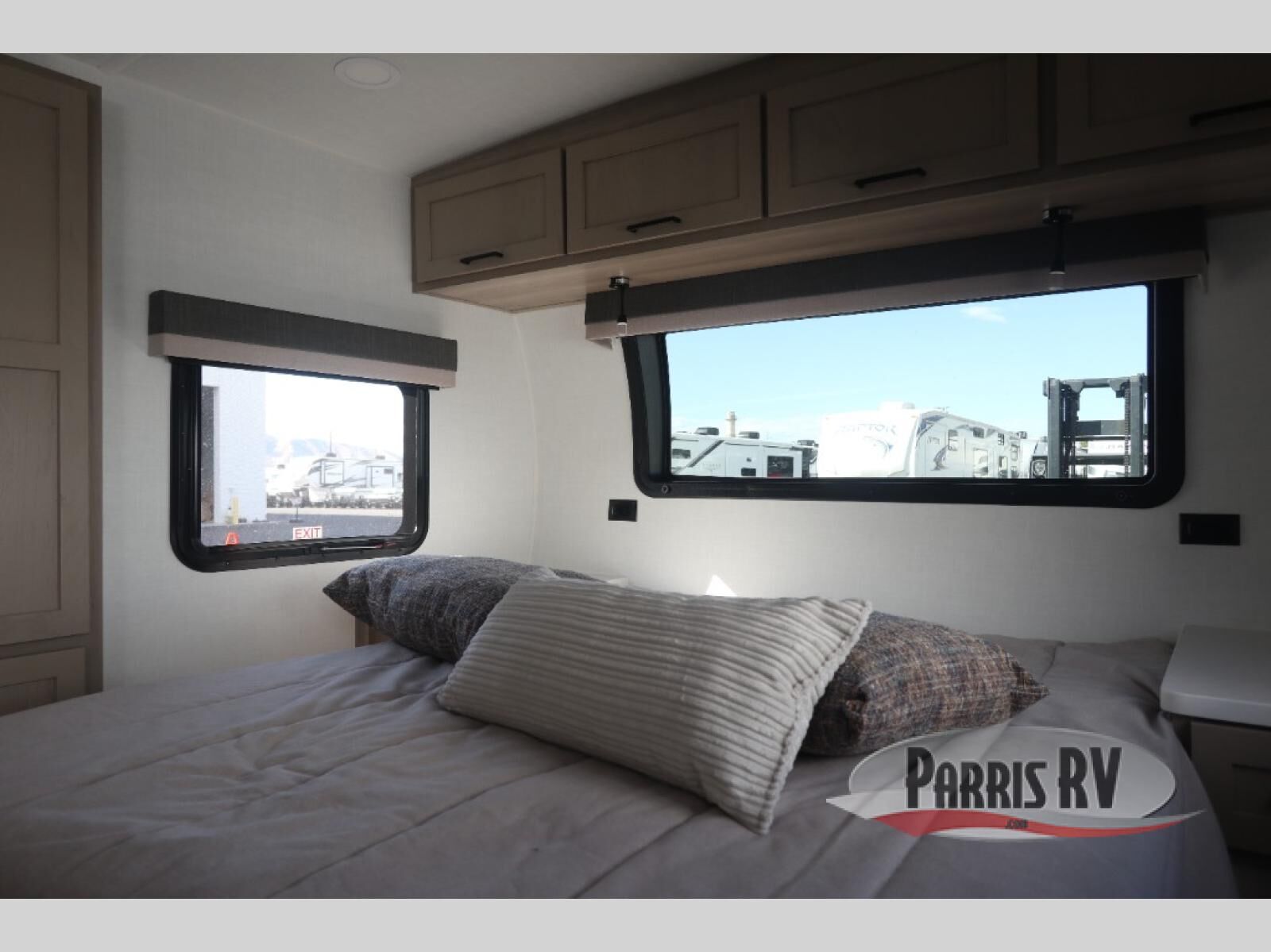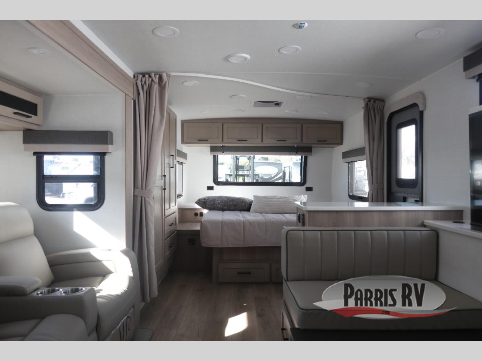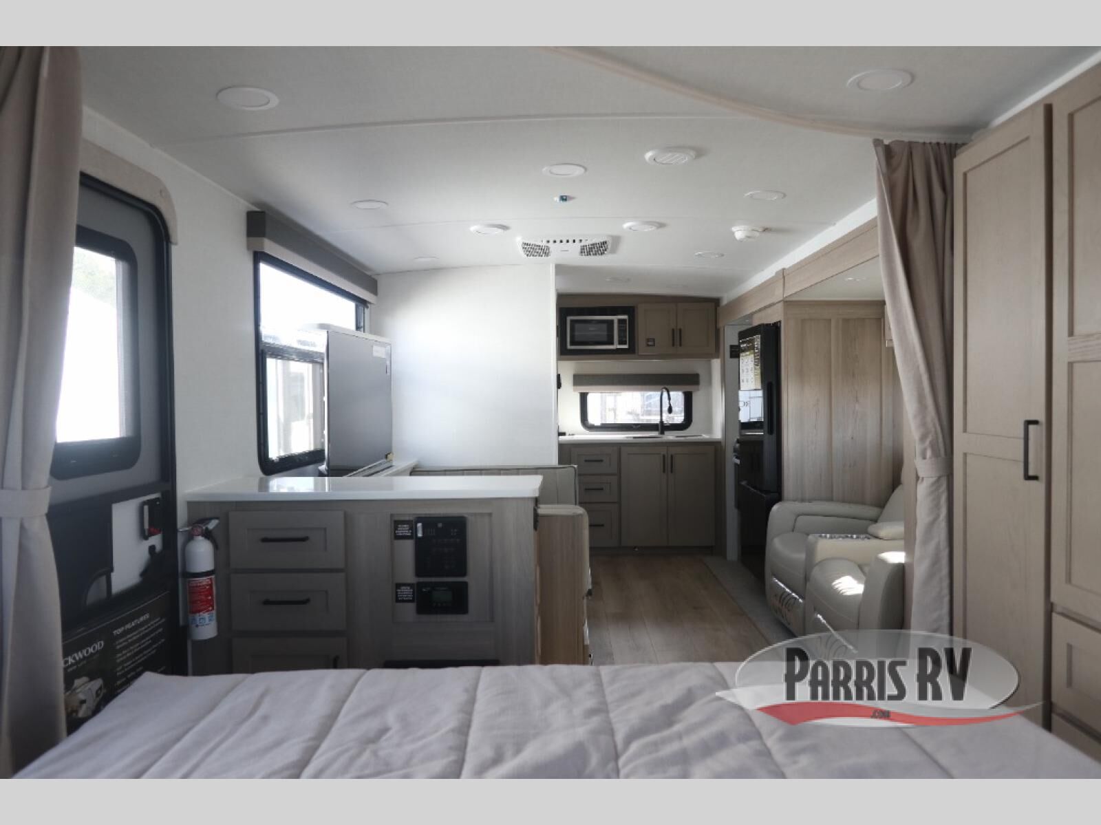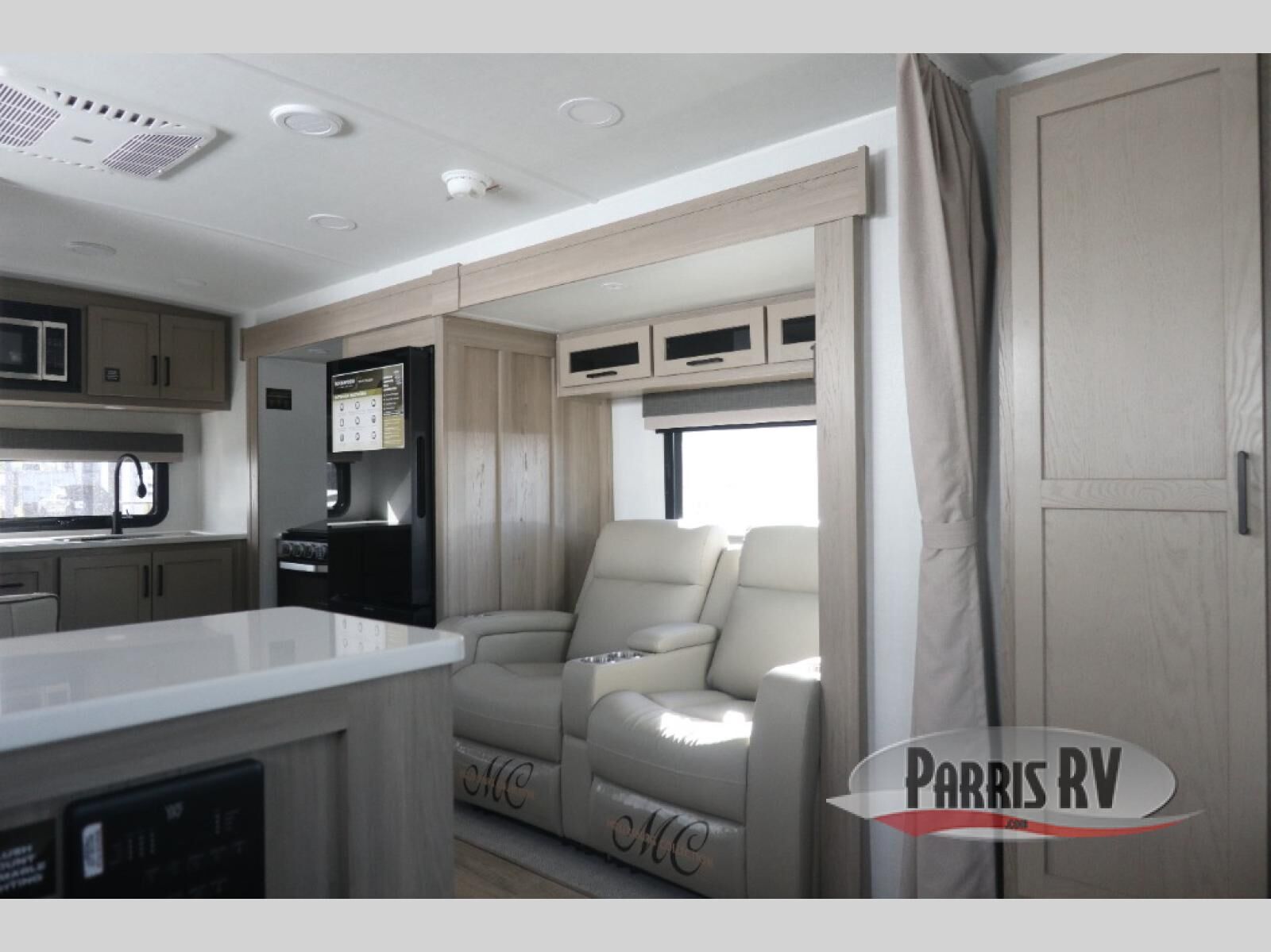 This stunning travel trailer is designed to provide the ultimate in comfort, convenience on the open road. The full bathroom is a haven for relaxation and refreshment, while the kitchen is equipped with a microwave, overhead cabinets, a three-burner cooktop, and a 12V refrigerator, making meal prep and dining the easiest task. The kitchen pantry provides ample storage for your favorite ingredients. Further, the booth dinette is a cozy spot for meals or socializing, and the theater seating is perfect for relaxing and enjoying your favorite shows or movies on the 12V Smart TV. Plus, the front bedroom is a serene retreat, featuring a spacious queen bed and convenient wardrobe, providing the perfect spot to rest and recharge after a day of adventure.