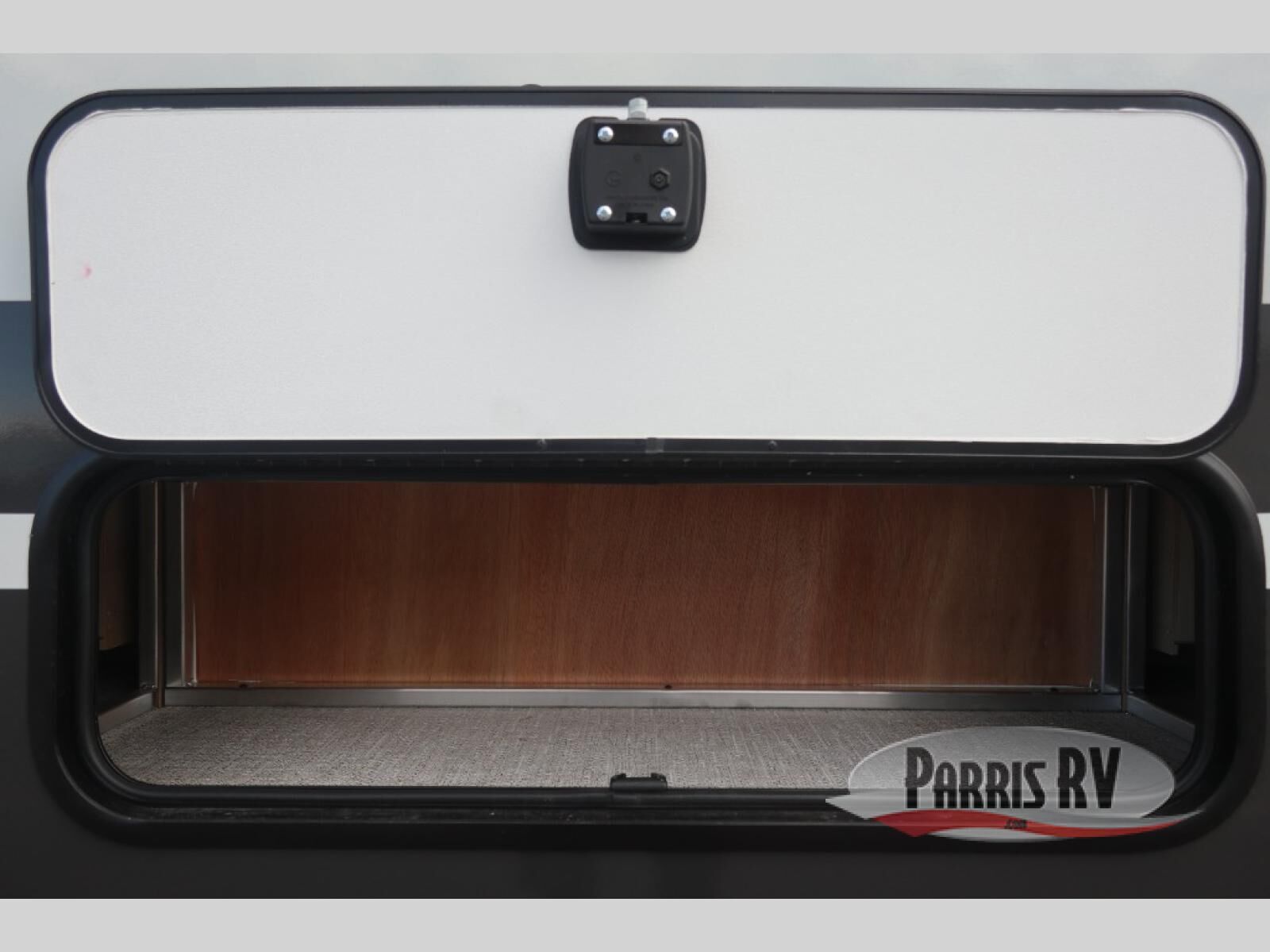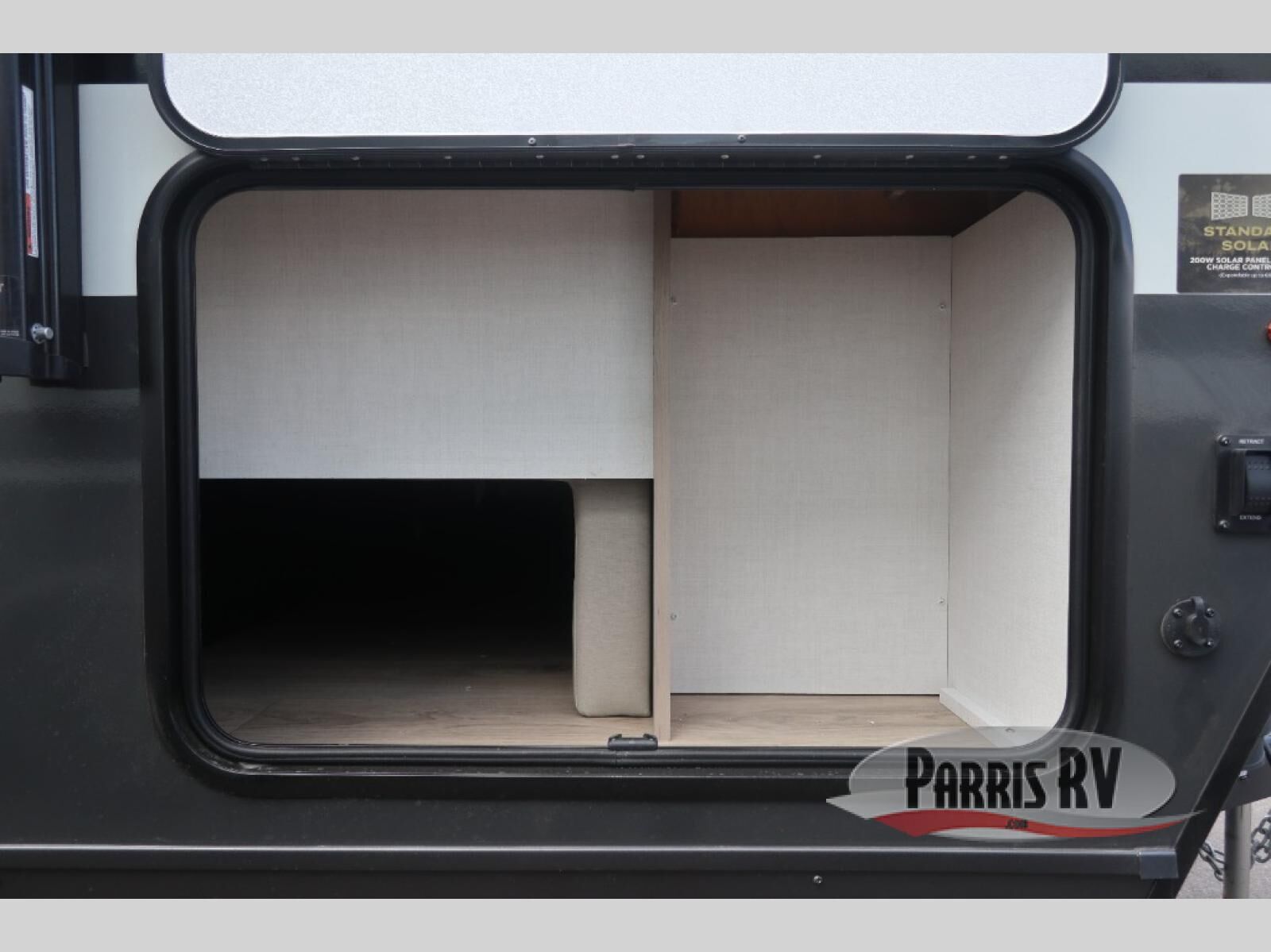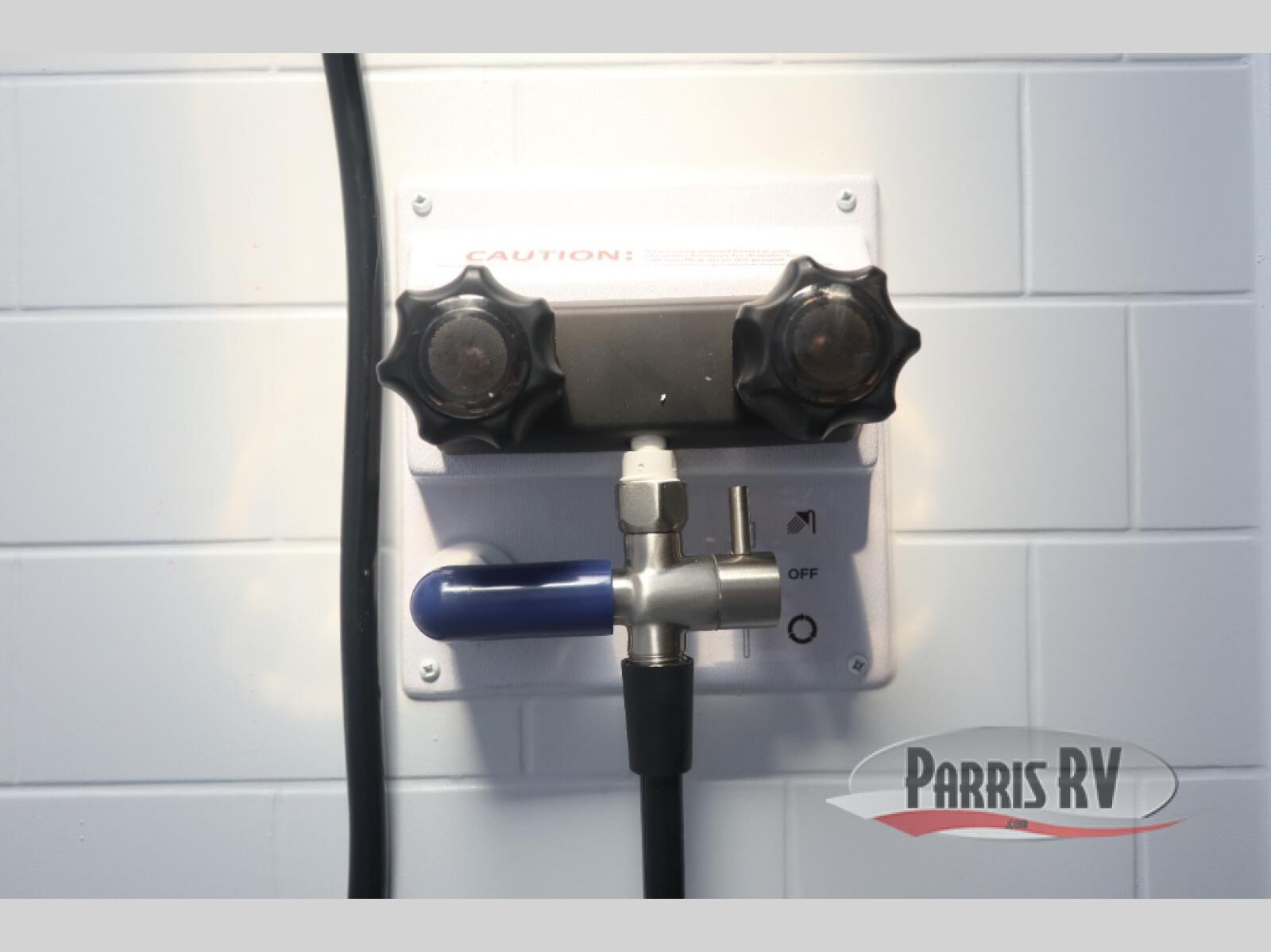 This versatile and cozy travel trailer will be perfect for weekend trips to the lake. Once you arrive at your campground, you can unload the water toys from the pass-thru storage, put out the 15' power awning, then make lunch on the exterior griddle. The U-shaped dinette slide inside will provide a place to dine, play board games, and let a guest or two sleep over, while you take the RV queen-size Murphy bed up front. In the morning, just fold up the bed to expose the 74" sofa! There is a three burner cooktop and microwave oven in the kitchen to make meals each day, along with a 12V refrigerator to keep leftovers fresh.