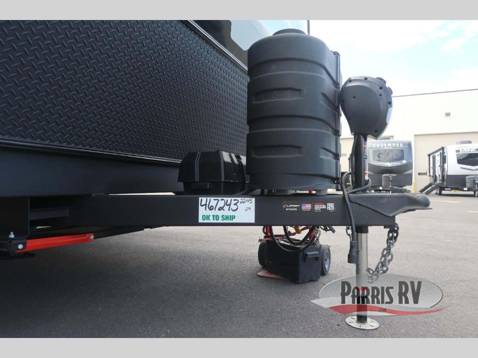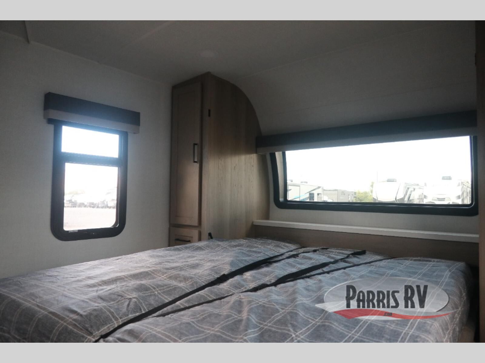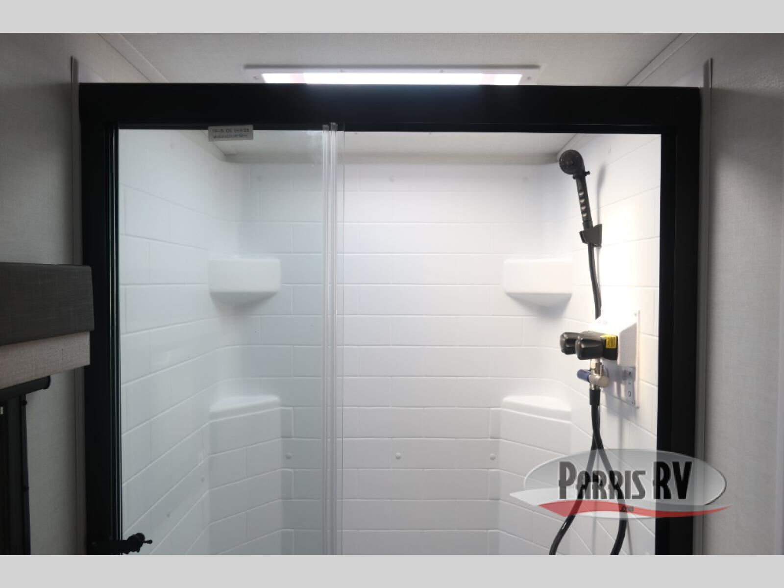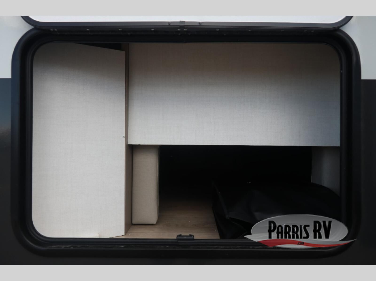 This versatile and cozy travel trailer will be perfect for weekend trips to the lake. Once you arrive at your campground, you can unload the water toys from the pass-thru storage, put out the 15' power awning, then make lunch on the exterior griddle. The U-shaped dinette slide inside will provide a place to dine, play board games, and let a guest or two sleep over, while you take the RV queen-size Murphy bed up front. In the morning, just fold up the bed to expose the 74" sofa! There is a three burner cooktop and microwave oven in the kitchen to make meals each day, along with a 12V refrigerator to keep leftovers fresh.