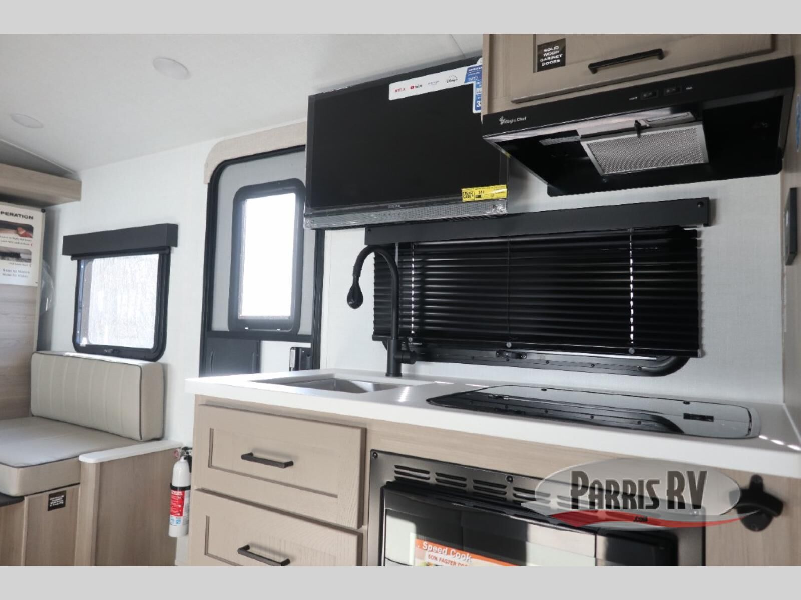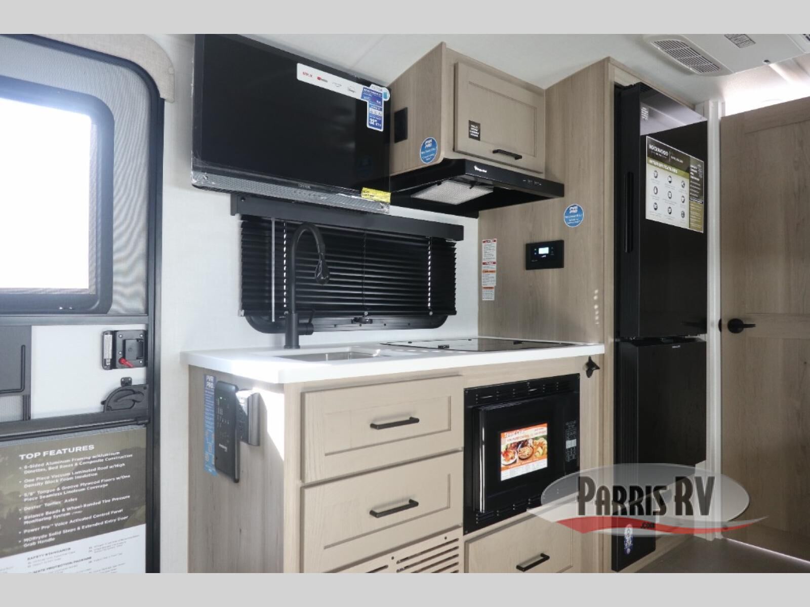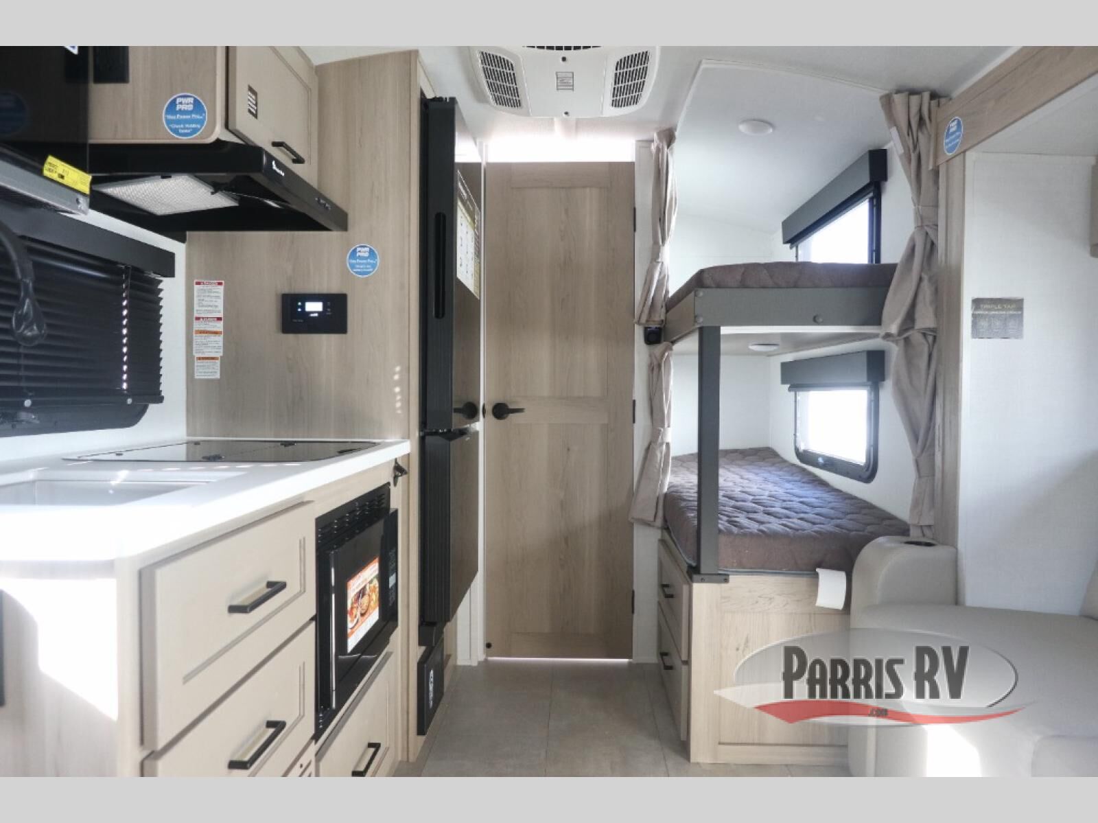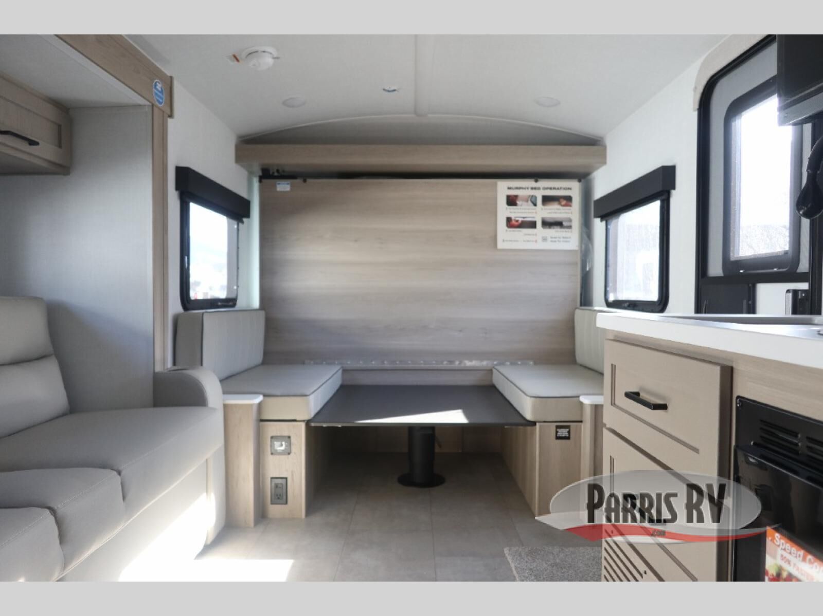 Perfect for families, couples, or friends, this trailer offers a great balance of comfort and practicality! Sleeping spots can be found in the bunk beds, which provide a cozy sleeping spot for kids or guests, while the 54" x 74" Murphy bed offers a spacious and comfortable sleeping area for two. Moreover, the kitchen is equipped with a three-burner cooktop for gourmet meals, a convection microwave for quick and easy cooking, and a fridge. The 39" dinette provides a comfortable spot for meals and snacks, perfect for enjoying quality time with family and friends. The 30" x 15" table provides additional space for dining, working, or playing games, and the sofa provides a comfortable seating area for relaxation and socializing, plus, the full bathroom provides a convenient spot to freshen up after a long day of exploring.