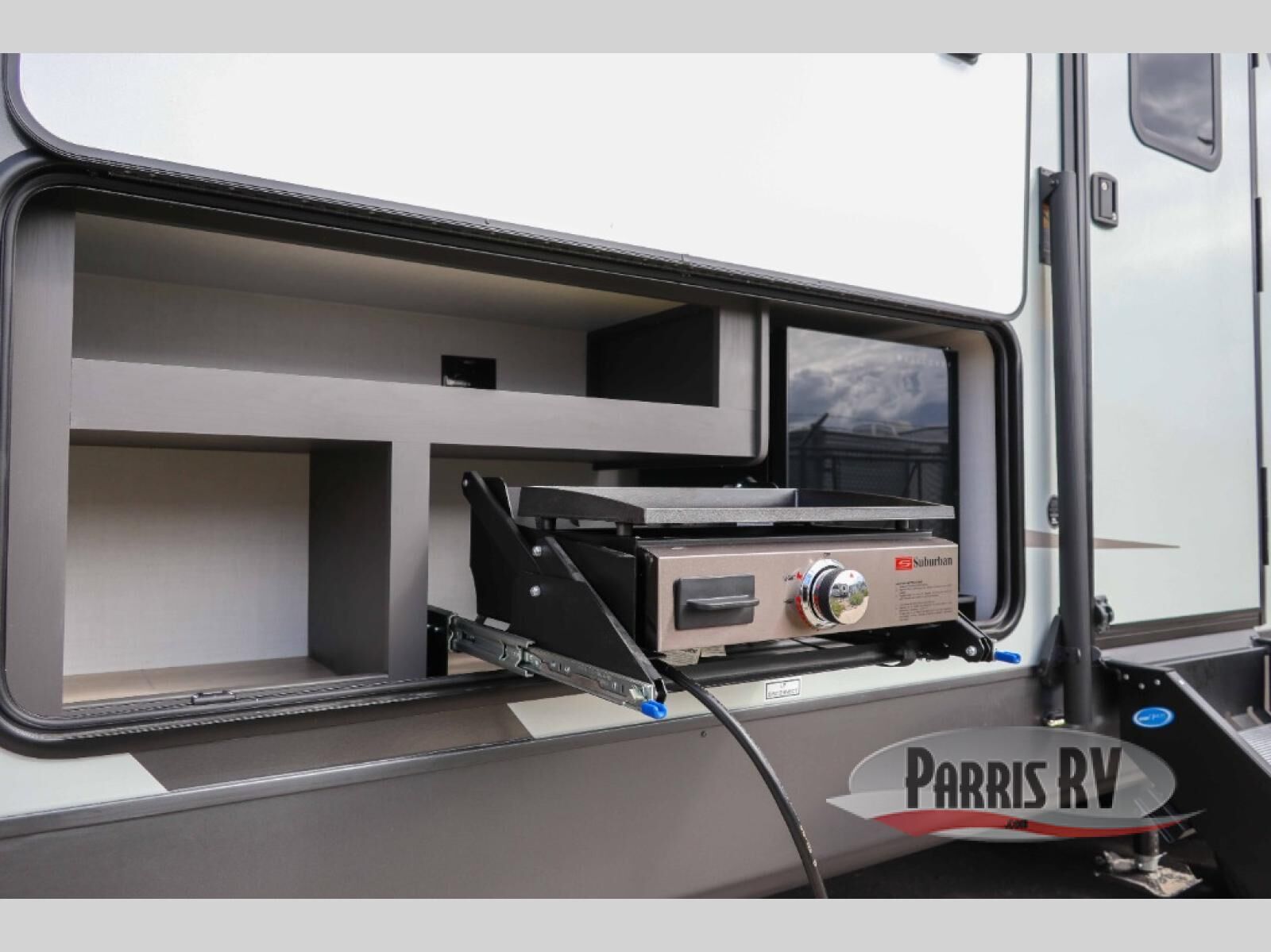 Looking for a trailer that sleeps eight, allows you to cook indoors or outdoors, and provides added interior space? This trailer provides for those wants and needs, and even more! The outside kitchen gives you more choices when feeding the masses along with the outside griddle, and the interior kitchen includes an L-shaped area for the cook to have their own space with full amenities including a walk-in pantry to bring along everything they need. The full bathroom will keep everyone refreshed, and the theater seating and U-shaped dinette offer seating inside to enjoy the Smart TV and fireplace. There is plenty of storage found throughout the interior, and along the exterior you will find several places to stow your outdoor items including in the pass thru storage with an optional steel sliding tray. There is even a front door option if you prefer to have dual entry doors!