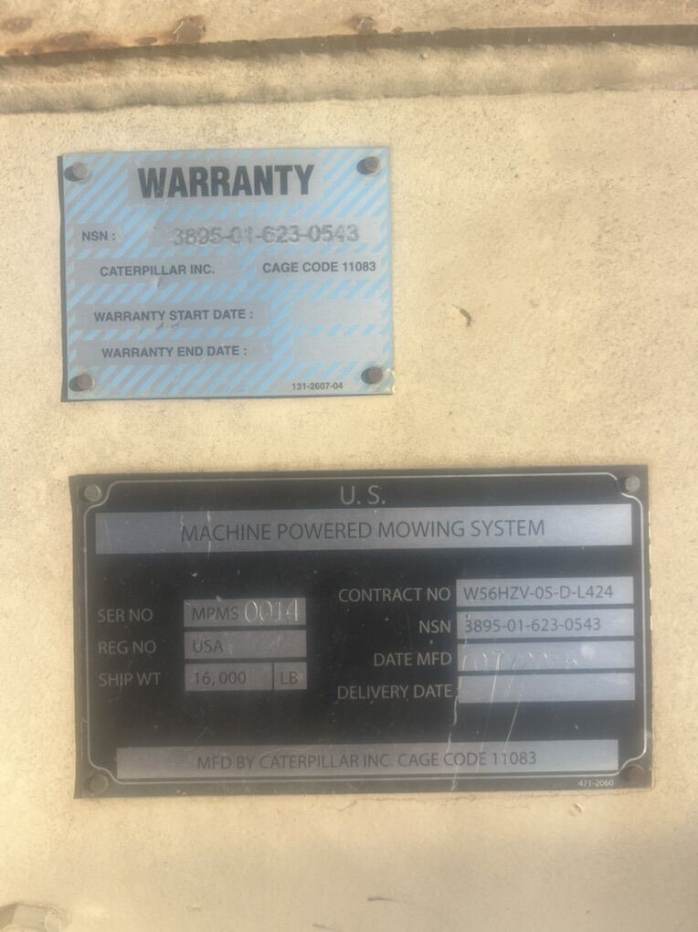 Cat machine powered mowing system for a wheel loader. Includes front mounted boom, saw attachment and mower head. Very little use.