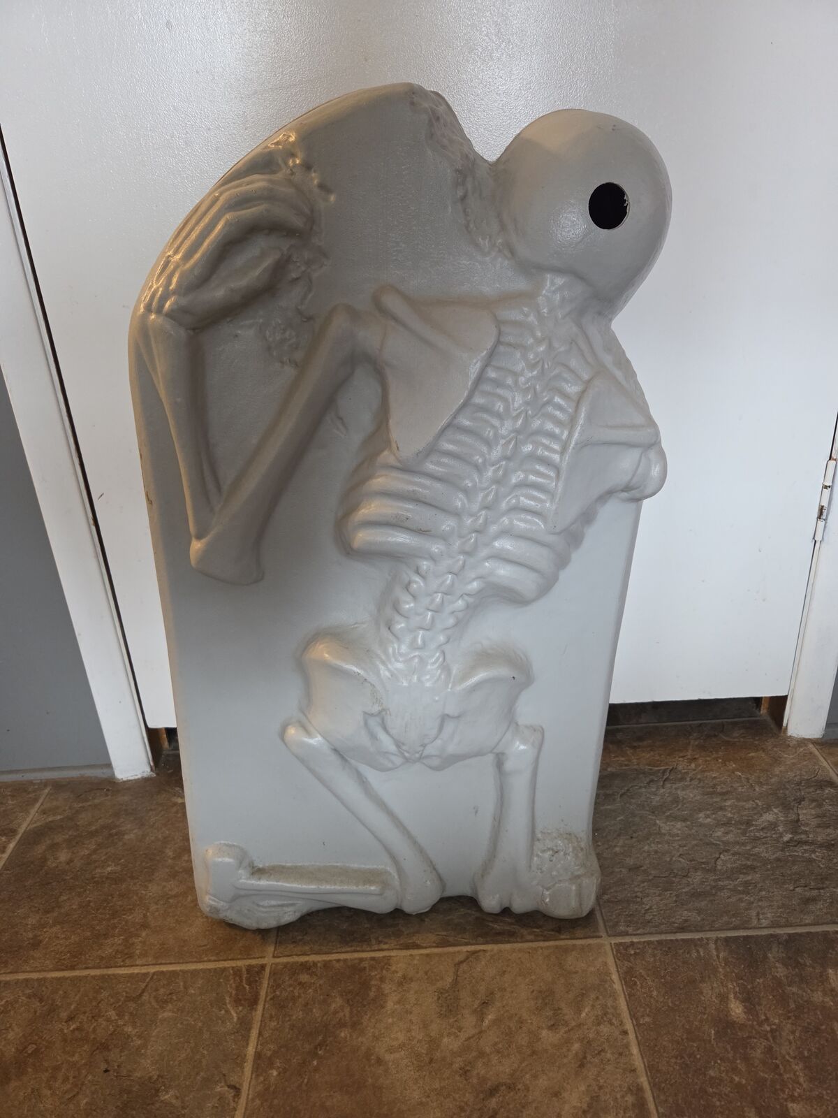 vintage TPI blow mold Halloween decoration featuring an "RIP" tombstone with a skeleton and rats