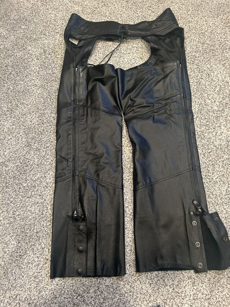 VenmoWomen’s Harley Davidson classica black leather chaps. Harley #98026-12VW, size Large. Length has been cut to approximately 29”inseam. Adjustable back, zipper full length on both legs with 3 snaps at the bottom. Smoke free home. $100.00