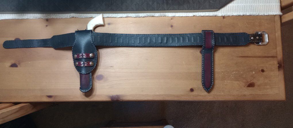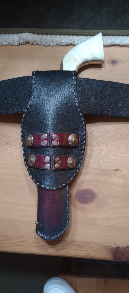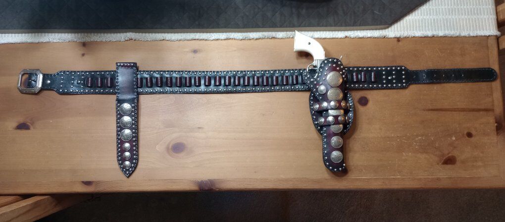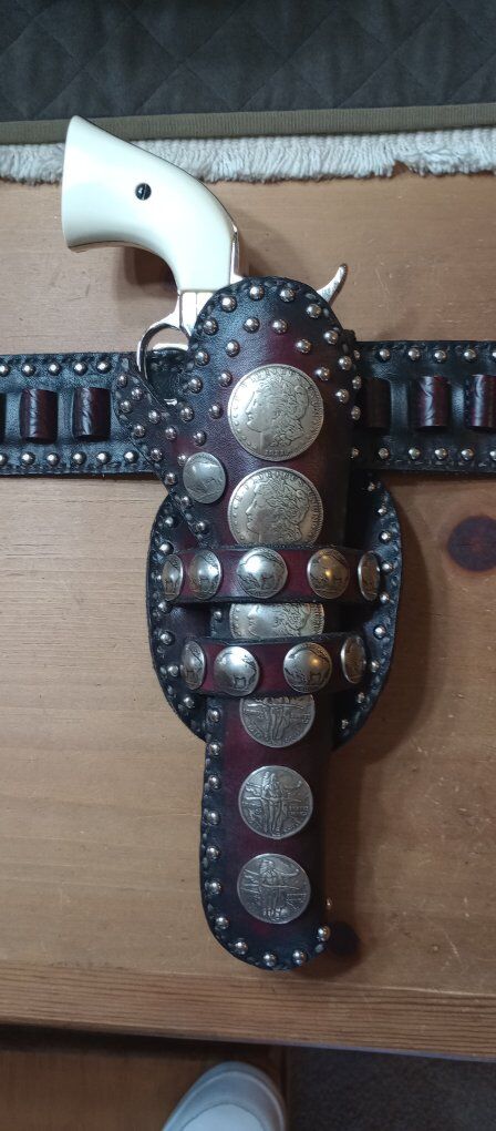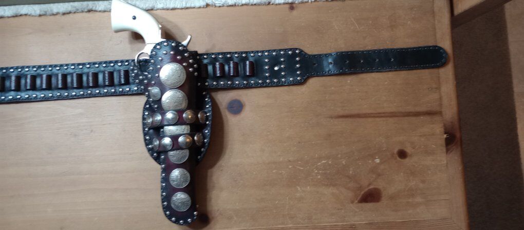 I have a beautiful Geronimo remake holster for sale. This totally custom holster is made to match the holster Geronimo wore. This is a totally custom holster that is even fully lined. This holster is handmade and hand stitched. I am asking 450.00 for this one of a kind holster, good luck trying to find another one. If you are interested in taking a closer look at this holster, or any of the items I have posted here on KSL, just text Steve at 801-623-1373 to schedule a time to drop by. I only accept cash! Be sure to check out all our ads here on KSL and happy shopping! The pistol in the pics is not included in the sale!!!!