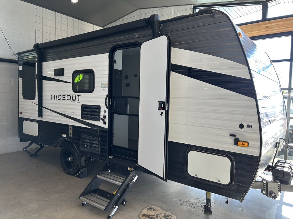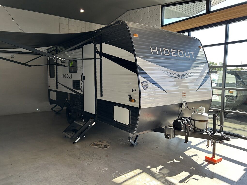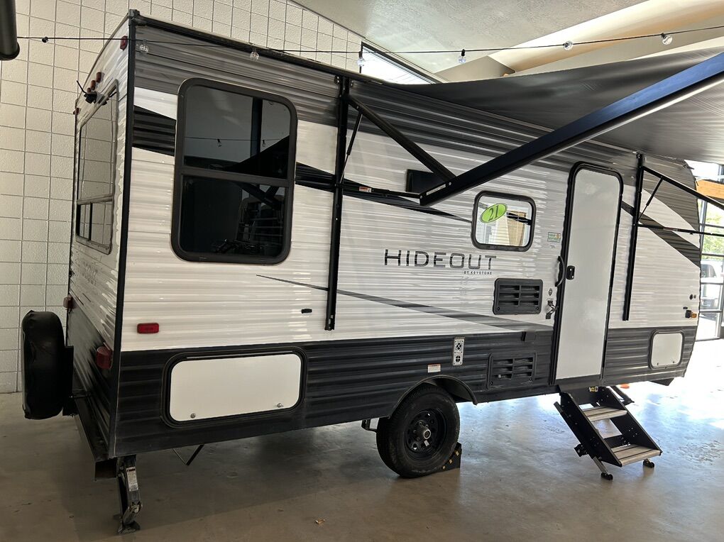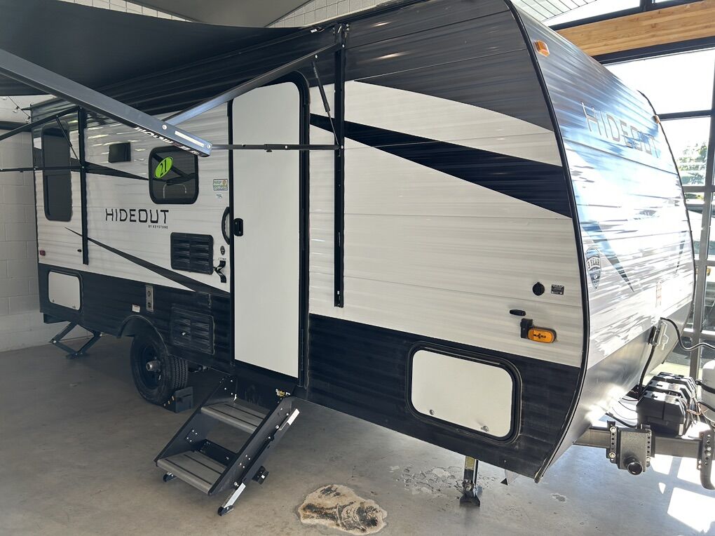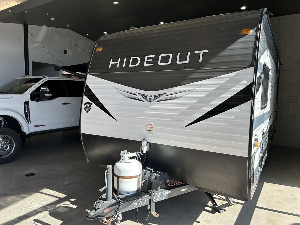 This 2021 Keystone Hideout 177RD is an extremely clean, lightweight, single-axle travel trailer featuring a U-shaped dinette, queen-size bed, full bathroom, and a large rear window. Key features include pass-through storage, a 10' power retracting awning, a 2-burner cooktop, a 12V refrigerator, and preparations for solar power and back-up cameras. the Keystone also provieds, Fresh Water Capacity of 27 gallons, Gray Water Capacity of 30 gallons, Black Water Capacity of 30 gallons, Propane Capacity of 20 lbs. (approximately 4.7 gallons). The seller is also providing, A Trailer Valet for easy steering and moving the trailer in a tight driveway. A 21 Gallon Rhino ToteTank for those long stays way out in nature. Also, plenty of brand new extras like a Furrion Vision S Vehicle Observation System, side camera with LED Marker Light. 125 V extension cord, a brand new Rhino clean out hose and much more. This is a must see!