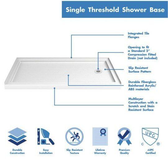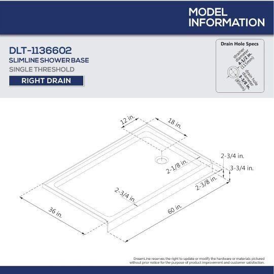 DreamLine SlimLine 32 in. D x 60 in. W DreamLine SlimLine 32 in. D x 60 in. W x 2 3/4 in. H Right Drain Single Threshold Shower Base in White, DLT-1132602