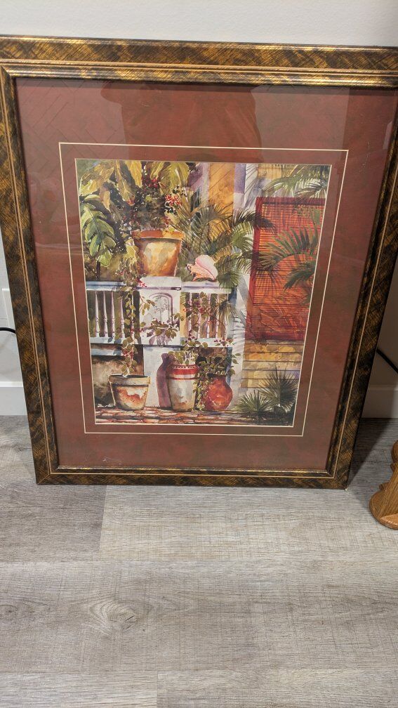 Framed artwork pictures. Pictures show the measurements. Original price $29.97. Text if interested. Asking $15.00 each or take both for $20.00