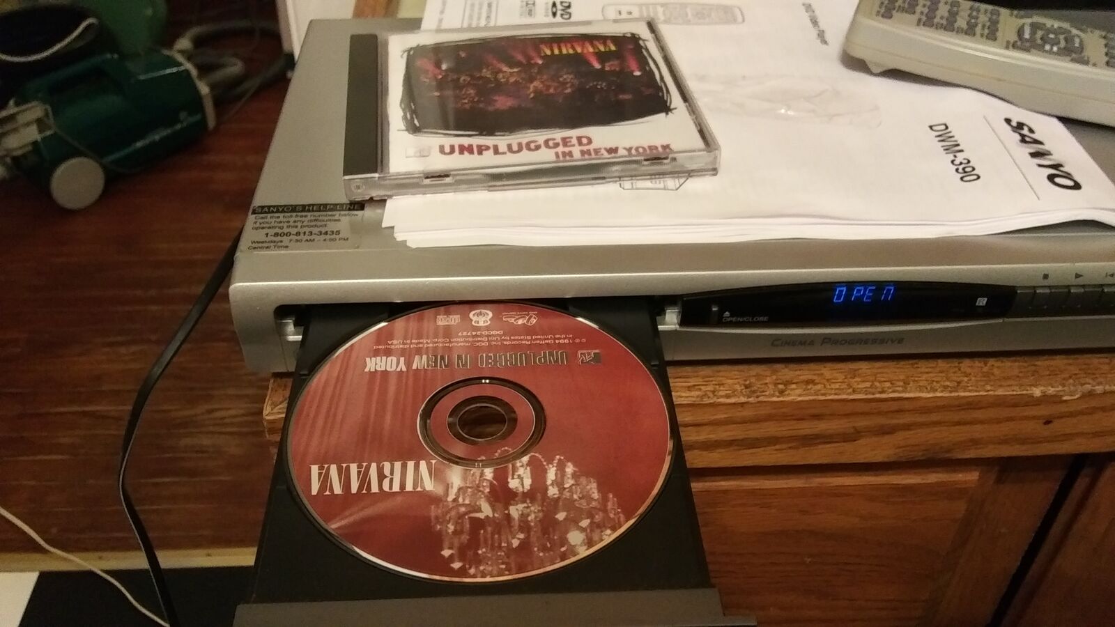 CD/DVD players. They all work well. Various brands. These work well as music CD players in addition to DVD movie players. None have remotes but you can hook them up with a universal remote(or you can push the buttons). These work great as CD players because you can bounce around songs on the cd with the buttons on the player. $10 each.