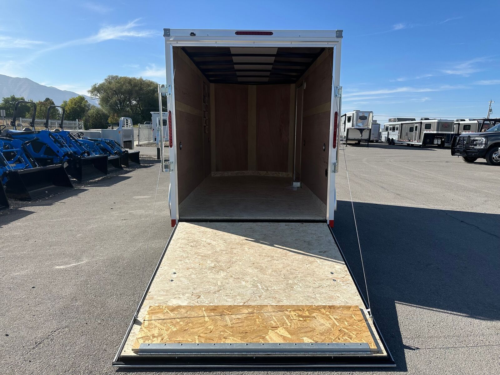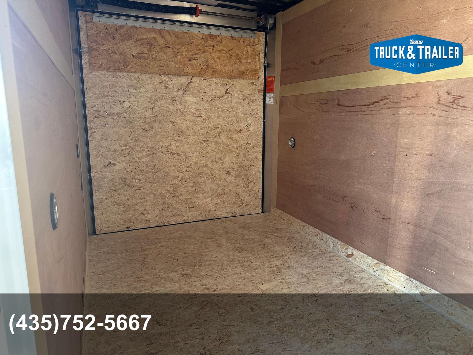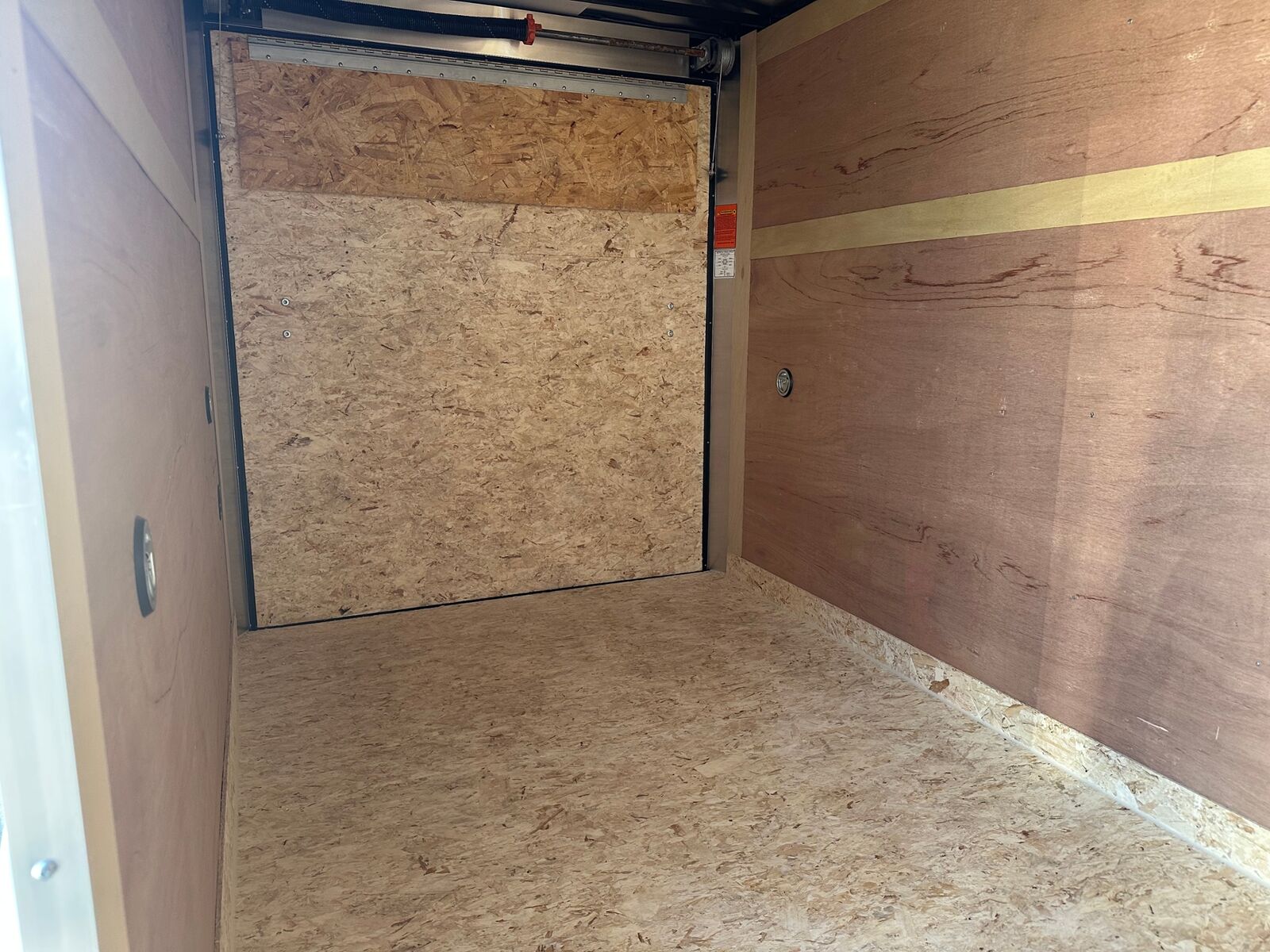 6X12 Cargo with Ramp Door Entire Chassis Undercoated White .024 Aluminum Exterior (With Screws) Safety Chains 3/4" PlexCore High Performance Decking Silver Mod Wheels E-Z Lube® Hubs Pass-Thru Side Door with Flush Lock & Dead Bolt Rear Ramp Door with Spring Assist Flow-Thru Sidewall Vents 12v LED Exterior Lighting 16" OC Floor Crossmembers 16" OC Vertical Posts 15" Radial Tires 16" Starbright Stoneguard Smooth Aluminum Radius Fenders 12v LED Dome Light Economy Sidewall Liner Spring Axles with 4" Drop 1-Year Limited Warranty 2" x 3" Tube Main Rails (Single Axle) 2" x 4" Tube Main Rails (Tandem Axle) 24" OC Tube Roof Structure 500 lb. Surface Wall Mounted Rope-Ring (4) *5' Wide Models Feature Single Swing Rear Door and NO Side Door as standard.