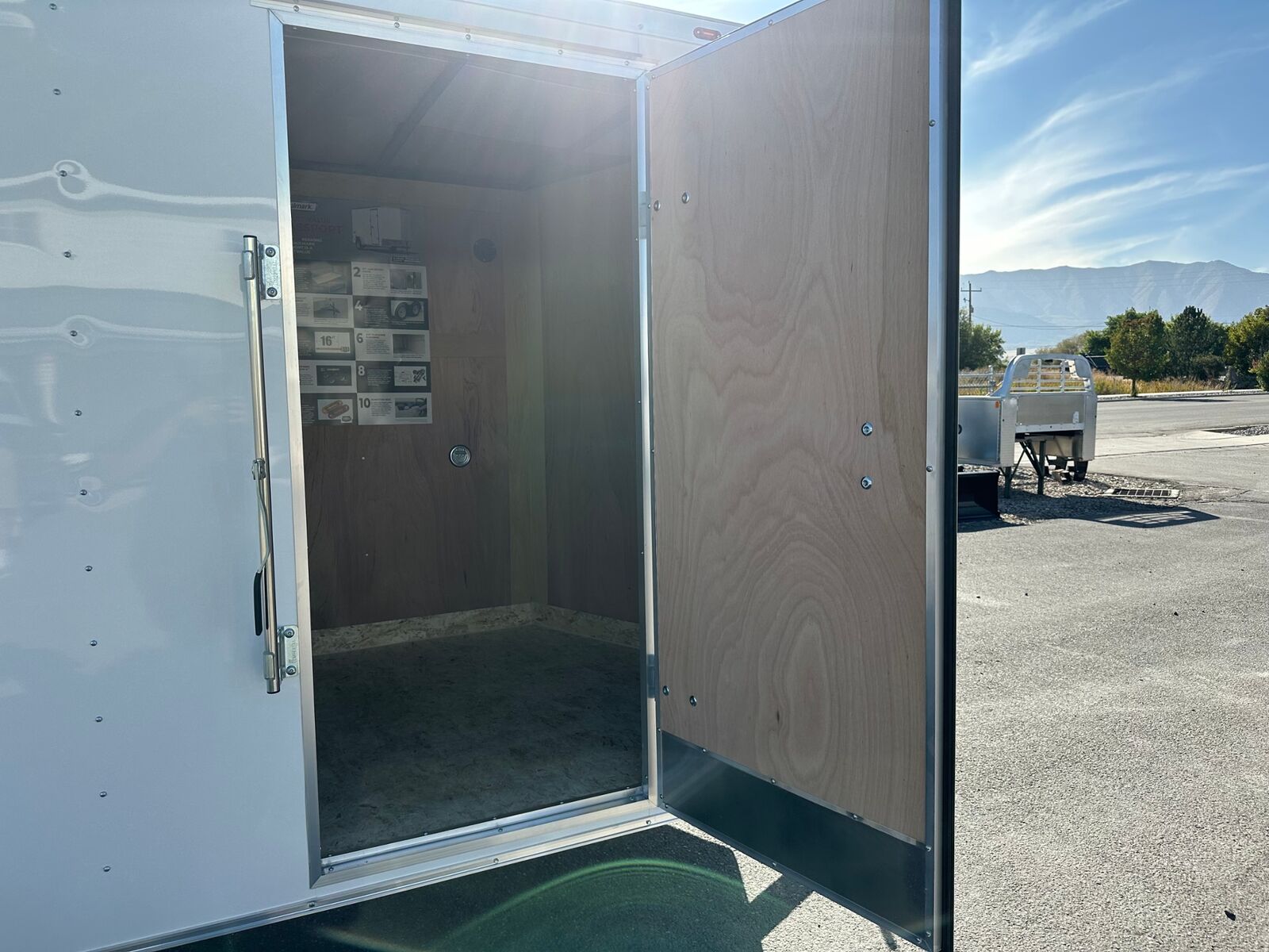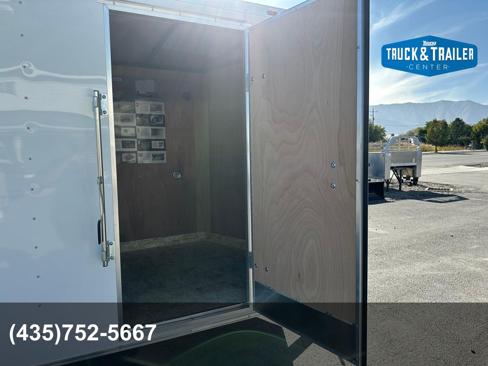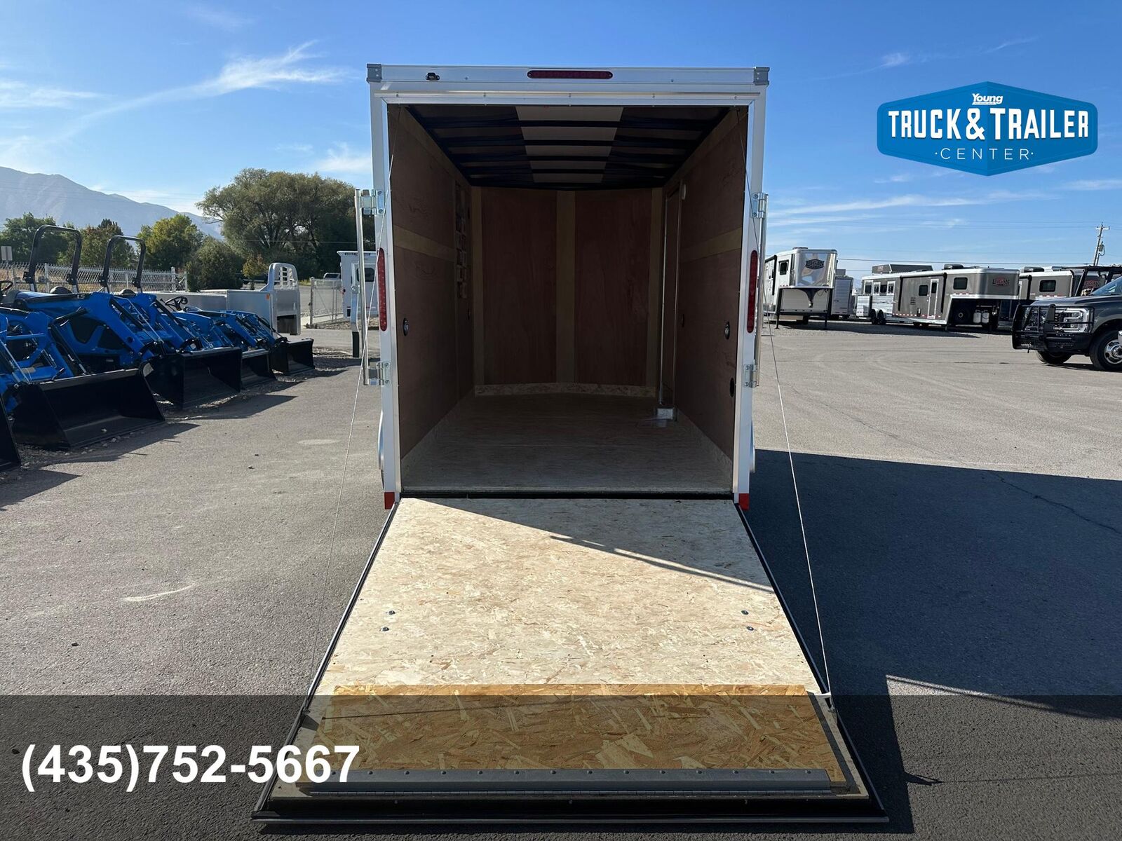 6X12 Cargo with Ramp Door Entire Chassis Undercoated White .024 Aluminum Exterior (With Screws) Safety Chains 3/4" PlexCore High Performance Decking Silver Mod Wheels E-Z Lube® Hubs Pass-Thru Side Door with Flush Lock & Dead Bolt Rear Ramp Door with Spring Assist Flow-Thru Sidewall Vents 12v LED Exterior Lighting 16" OC Floor Crossmembers 16" OC Vertical Posts 15" Radial Tires 16" Starbright Stoneguard Smooth Aluminum Radius Fenders 12v LED Dome Light Economy Sidewall Liner Spring Axles with 4" Drop 1-Year Limited Warranty 2" x 3" Tube Main Rails (Single Axle) 2" x 4" Tube Main Rails (Tandem Axle) 24" OC Tube Roof Structure 500 lb. Surface Wall Mounted Rope-Ring (4) *5' Wide Models Feature Single Swing Rear Door and NO Side Door as standard.