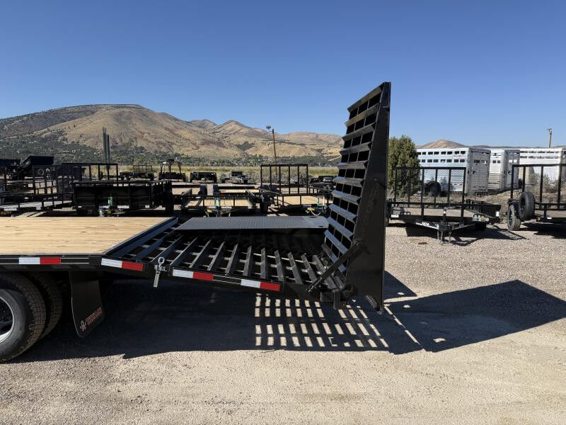 Titan makes possibly some of the most rugged, heavy duty, and long lasting Flat bed trailers on the market! This trailer comes with a Continuous 10" I-Beam Frame that runs the full length of the deck which then tapers down into the impressive heavy duty, full width, 6' Wide Glide Ramps. These are the best ramps fold over ramps in the industry, Period. Raised angle iron in both the ramps and the dovetail are added for maximum traction. With 12' of approach, you can make your equipment loading even easier. The ramps can be stowed in the upright or flat positions, but when you fold them down flat, you just gained an extra 6' of deck space that can hold just as much weight as the deck itself. If you're ready to up your towing game, or have been looking for a trailer that can handle as much work as you can throw at it. Your first choice should be THE TITAN RUFF NECK!