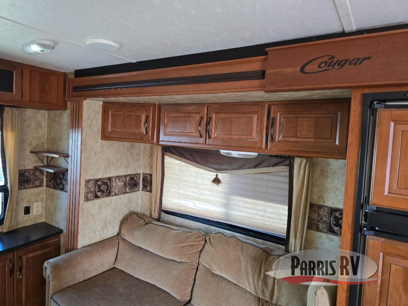 Keystone Cougar High Country Triple Slide w/Rear Full Wall Ent. Center w/LCD TV & Overhead Storage, Sofa & Booth Dinette Slide, 2nd Sofa/Refrig./3 Burner Range Slideout, Kitchen Island w/Dbl. Sink & Overhead Storage, Side Aisle Bath w/Neo-Angle Shower, Toilet & Sink, Dbl. Bath Entry, Front Queen Bed Slide, Dresser/TV, Front Master Wardrobe w/Sliding Doors, Pass-Thru Storage and Much More!