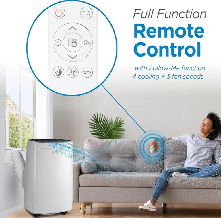 Follow Me Remote: Our portable AC unit comes with a full function remote control that features a FOLLOW ME function, which allows the remote to act as a thermostat for precise temperature control.