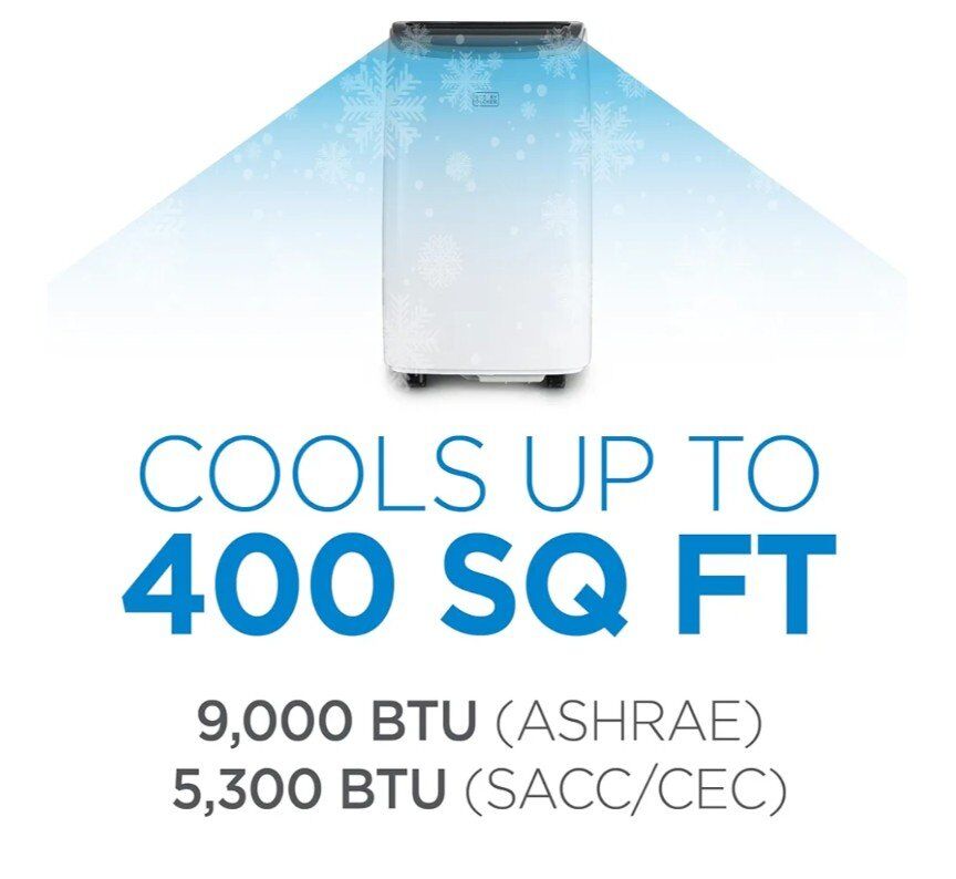 Portable AC: Use this personal air conditioner (15.3” x 14” x 24.8”) in rooms up to 400 sq. ft. Stay cool in the hot summer months and sleep well with this BLACK+DECKER ac unit for bedroom.