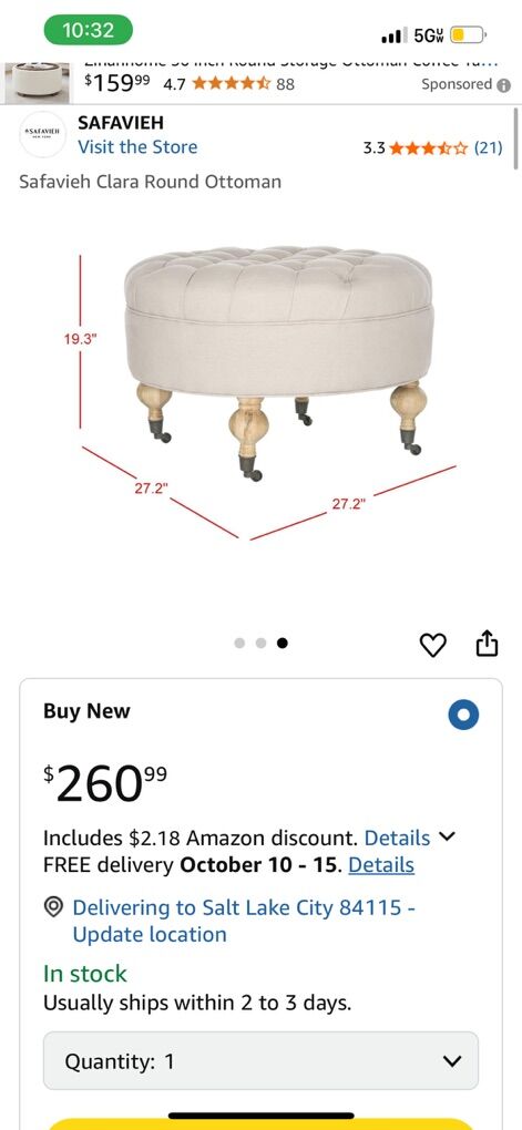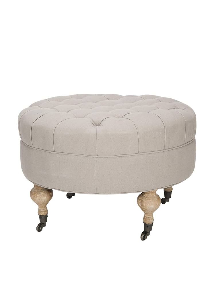 New Use this ottoman as a footrest, extra seating or as a stunning accent This ottoman features a seat height of 18.3 -Inch This ottoman is crafted of birchwood and linen Perfect for a living room, family room, den, library or study