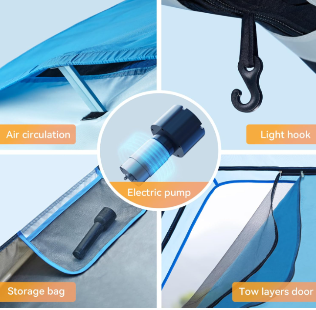 ZelleAutomatic Inflatable Camping Tent,2-4 Person Tent UV50+ Waterproof Inflatable Tent for Family Camping Glamping Party Outdoor Hiking Backpacking,with Camping Accessories 6.7 X 6.7Ft