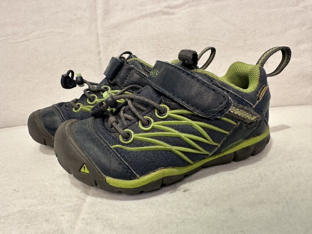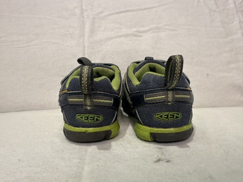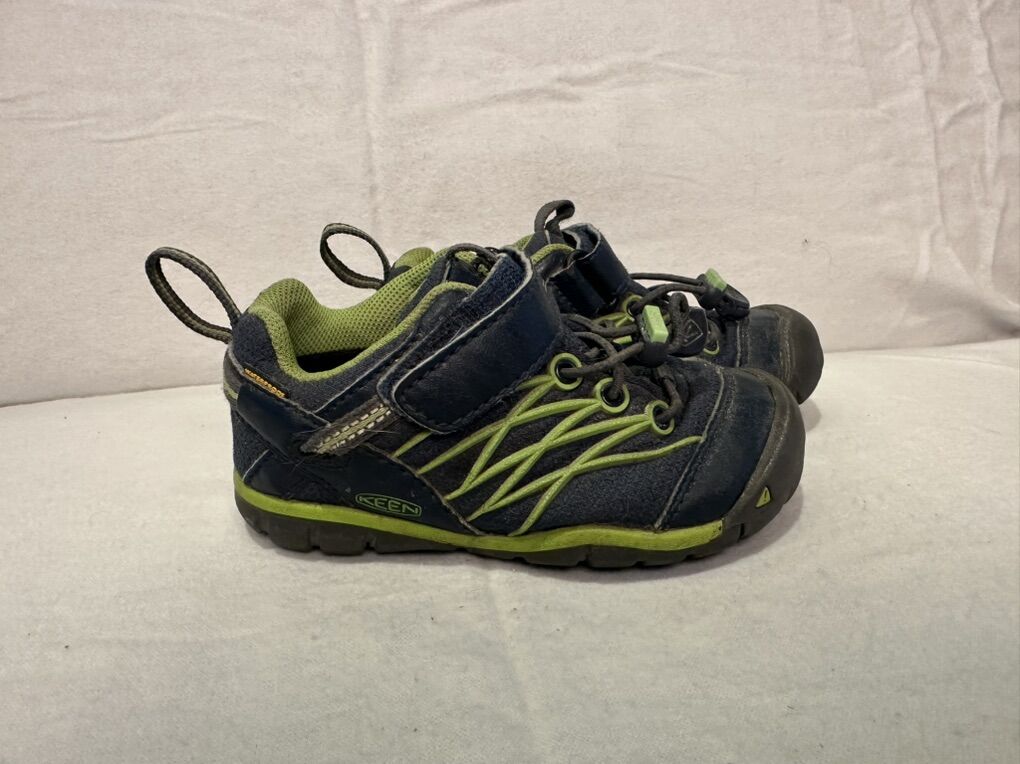 Keen toddler, size 8, navy blue textile with lime, green trim, waterproof, hiking shoes. These have elastic laces with a toggle and a Velcro strap at the top. These are in good condition, see photos for detail details. I take cash or Venmo, but cash is preferred. Text is best. 801-201-4446. Check out my other ads for additional sizes and styles.