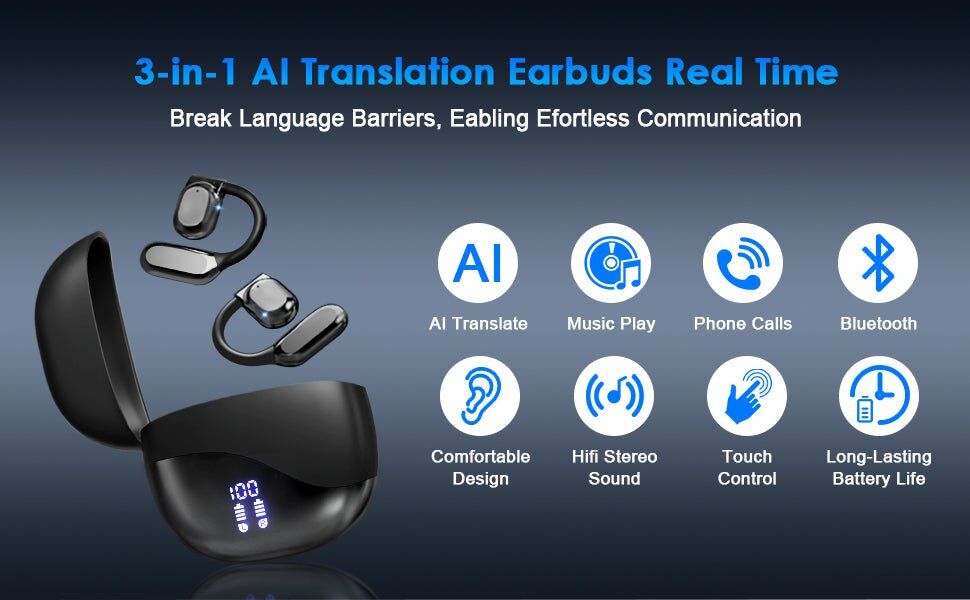Experience seamless communication with our Translator Headset—a 3-in-1 device designed to translate languages, stream music, and handle calls effortlessly. Supporting offline translation in 144 languages, it ensures barrier-free communication wherever you go.