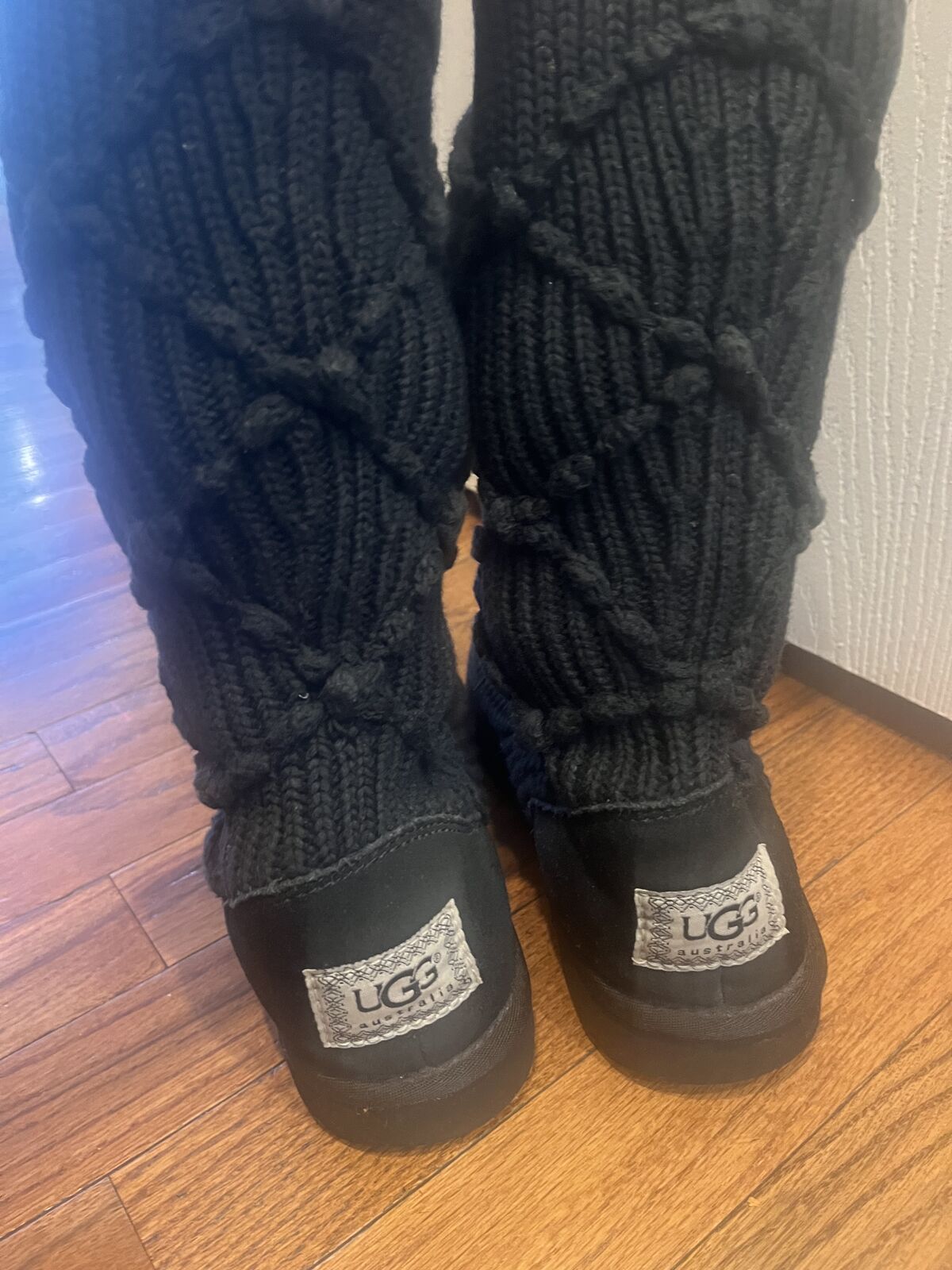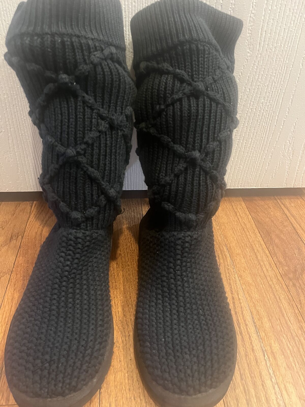 Ugg women's knit black sweater boot size 6. Please contact me if you have any additional questions.