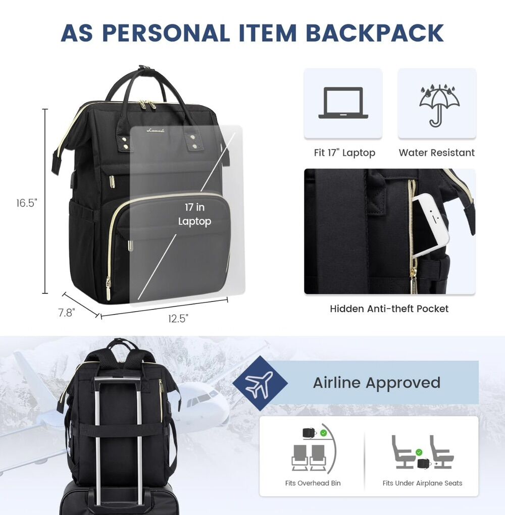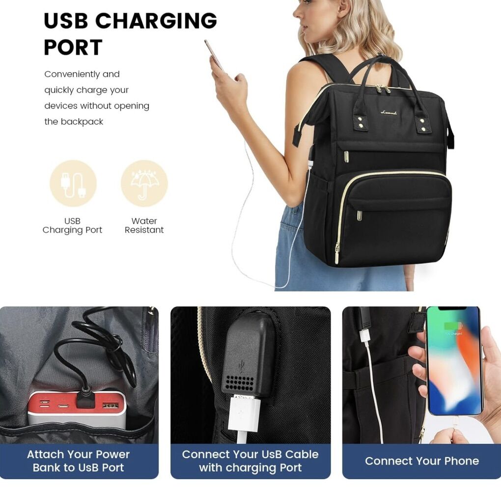 Designed for Convenience: This laptop backpack women having the strap to attach it to a suitcase handle for ease of carrying through the airport. A hidden zipper on the back for your valuable objects such as wallets and phones. Laptop backpack with USB charging port make it easy to charge your phone when traveling (POWER BANK is not included).