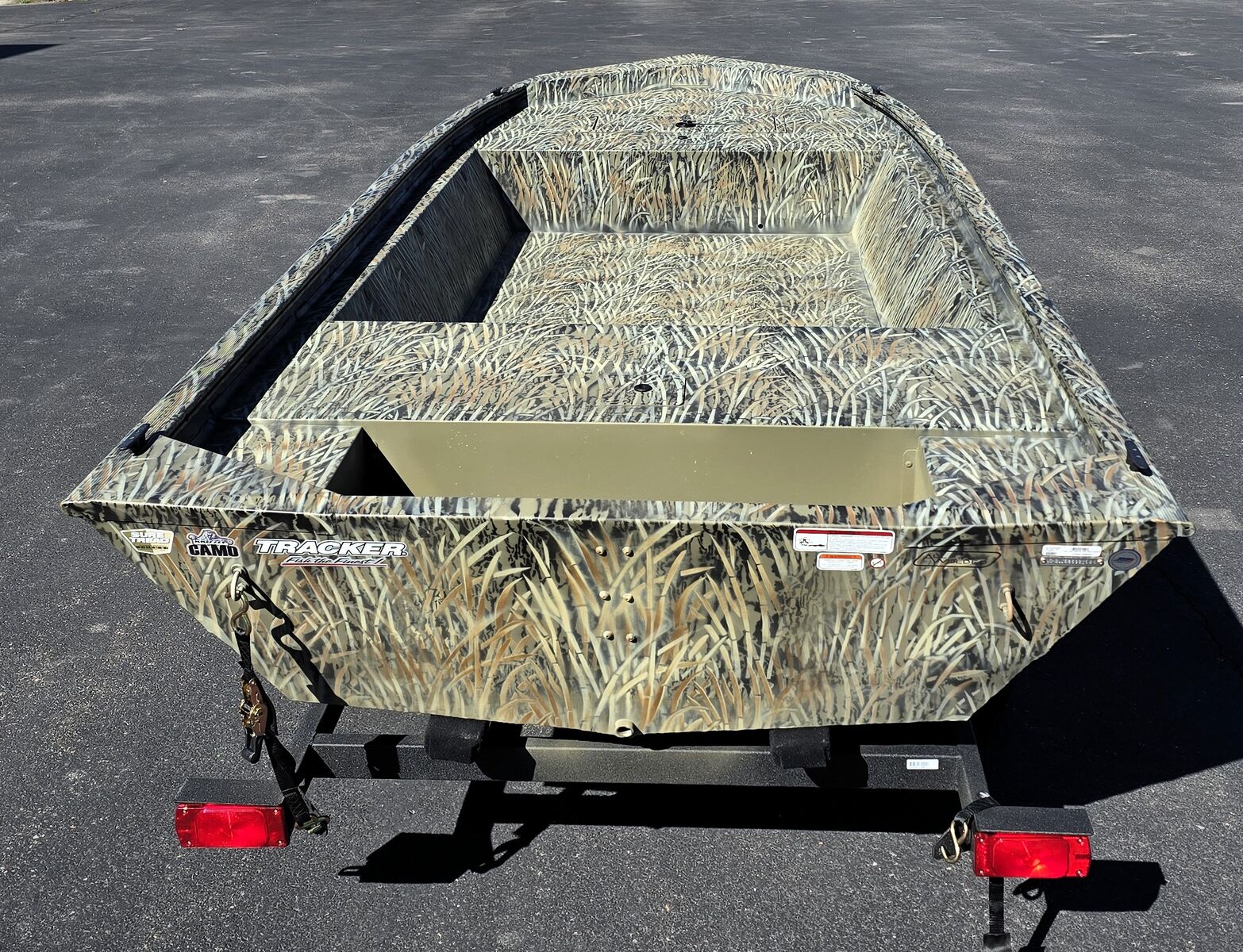 The 1648 has a thick .190 aluminum cockpit floor plus a big front deck with a lockable storage compartment. The 7° deadrise Mod V hull provides a smooth, dry ride, and it's finished with our exclusive Forest Green powder-coat (as well as SURE TREAD™ texture on the floor). And like all TRACKER boats, it’s backed by the TRACKER PROMISE—the best factory warranty in aluminum boats.